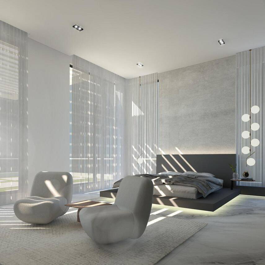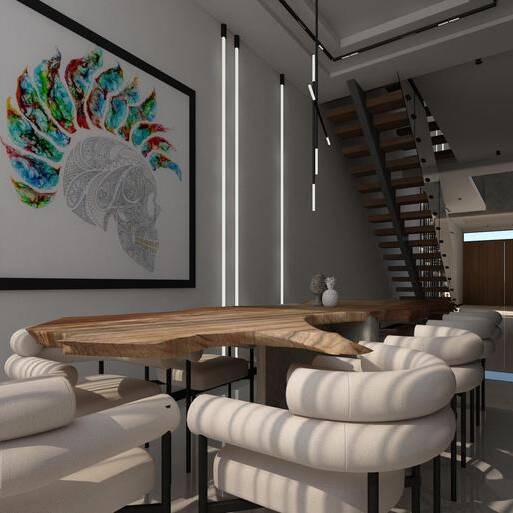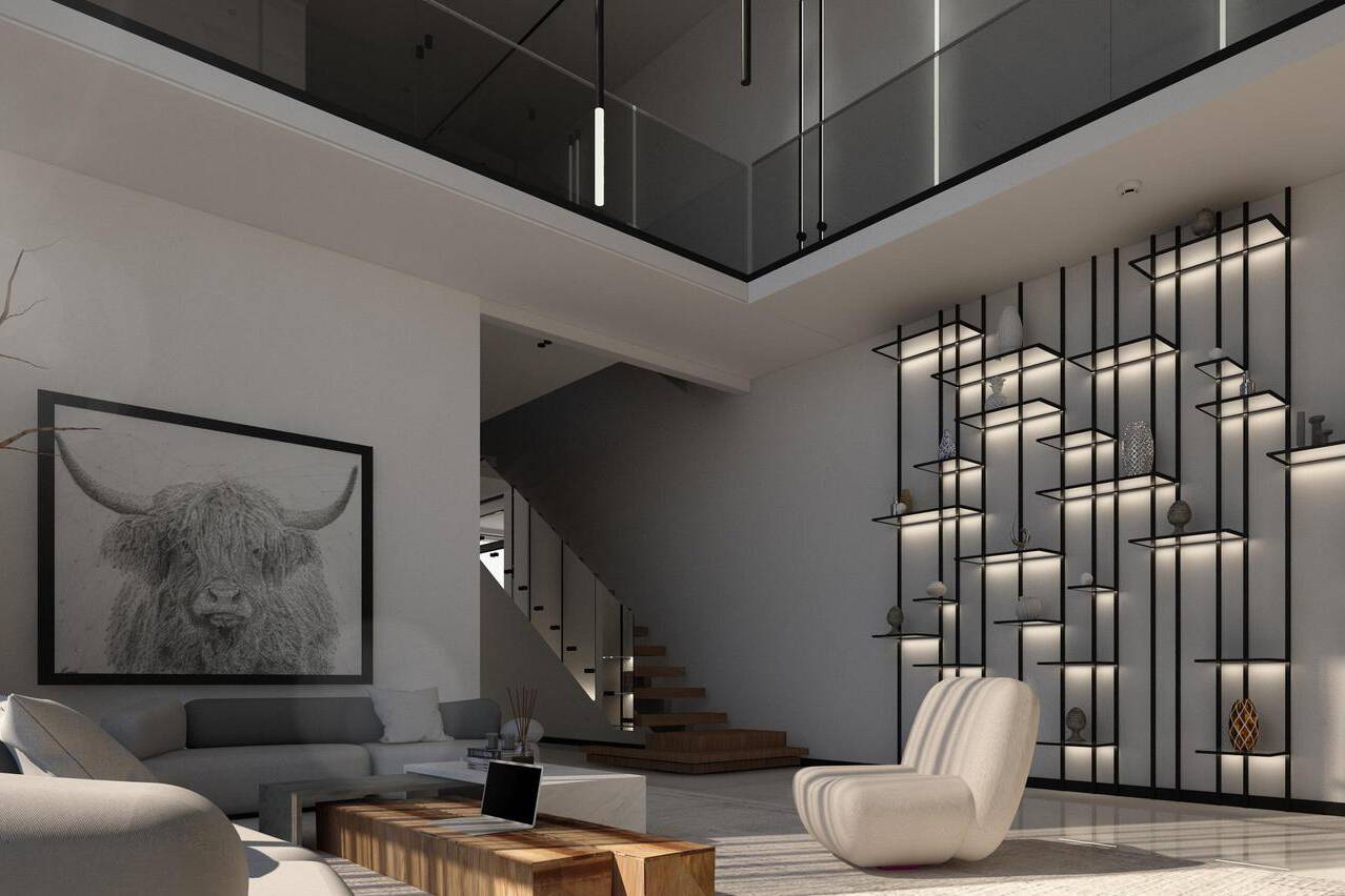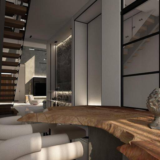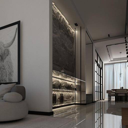 White Villa Interior is designed as a balanced and sophisticated space where crisp white surfaces are complemented by warm wood tones and striking black accents. Thoughtful detailing, materials, and spatial organization create a harmonious and elegant environment with a modern, layered aesthetic.