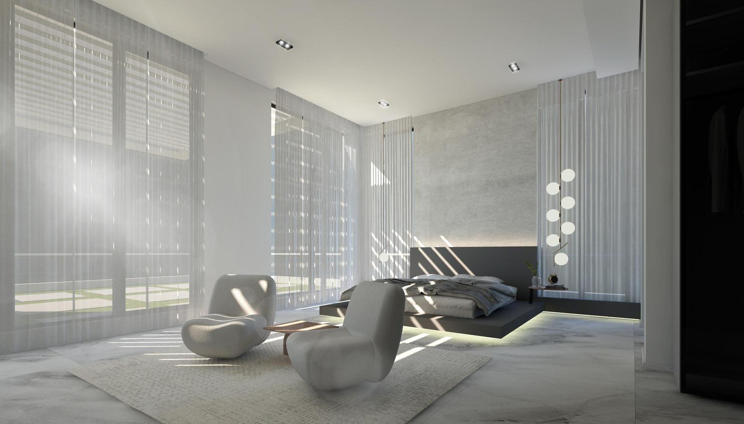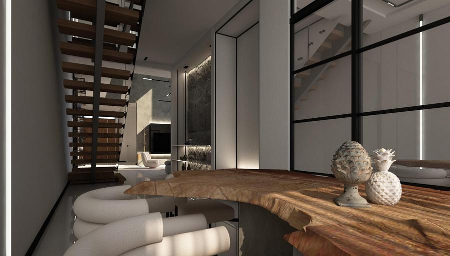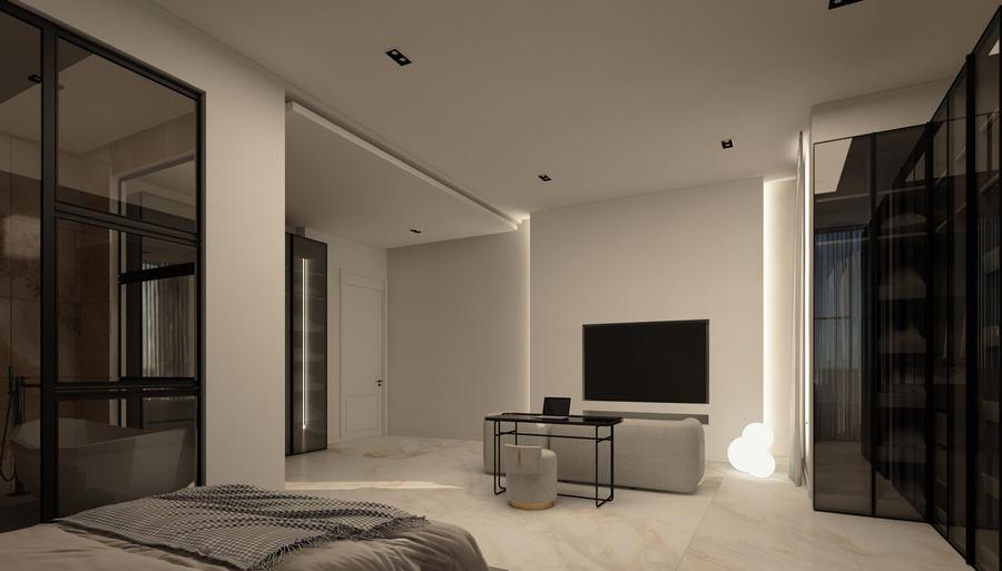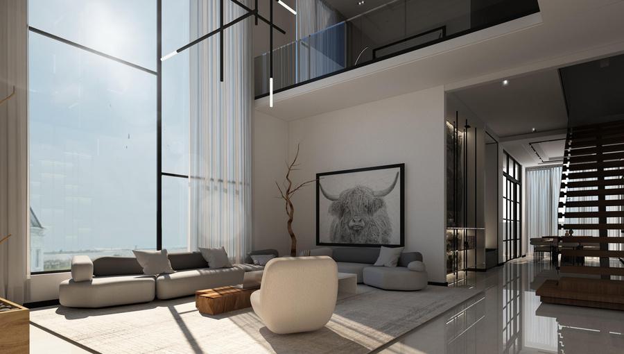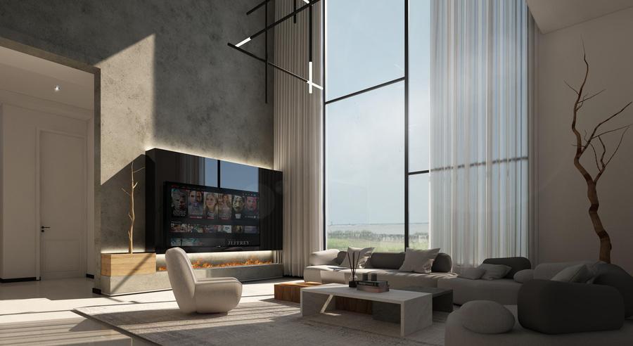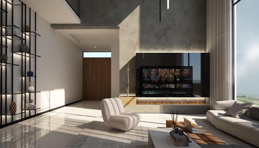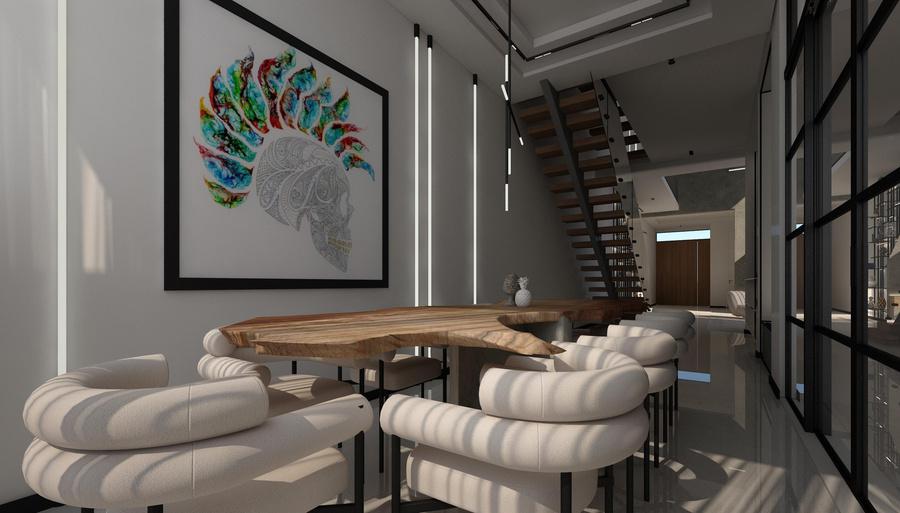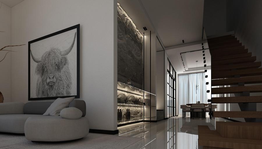 White Villa Interior is designed as a balanced and sophisticated space where crisp white surfaces are complemented by warm wood tones and striking black accents. Thoughtful detailing, materials, and spatial organization create a harmonious and elegant environment with a modern, layered aesthetic.