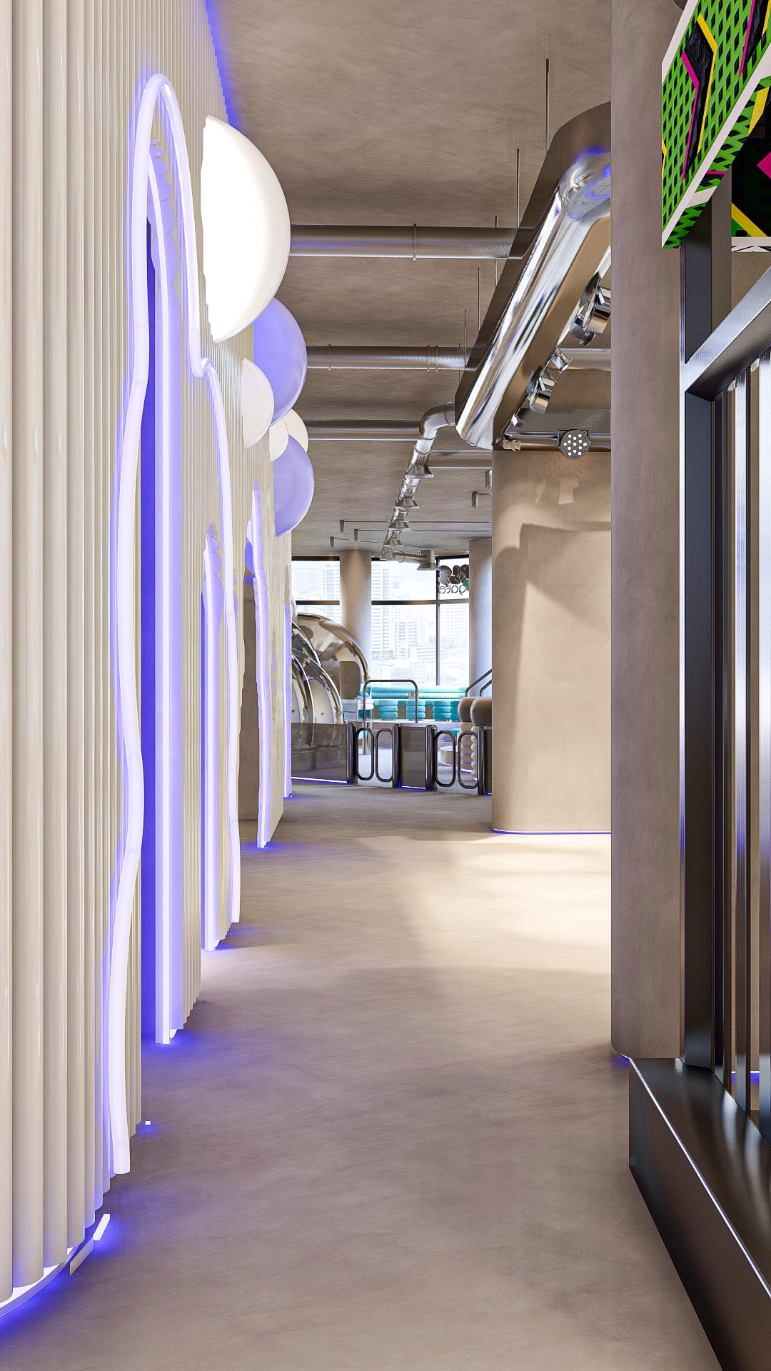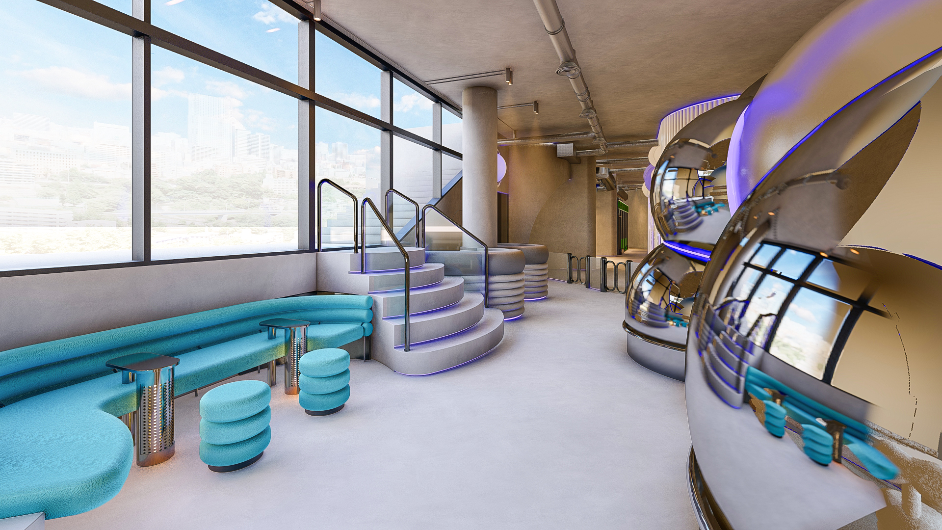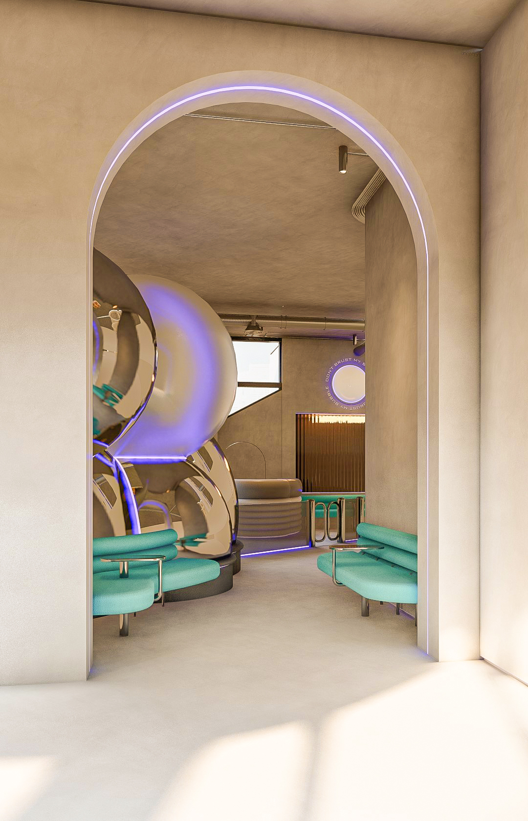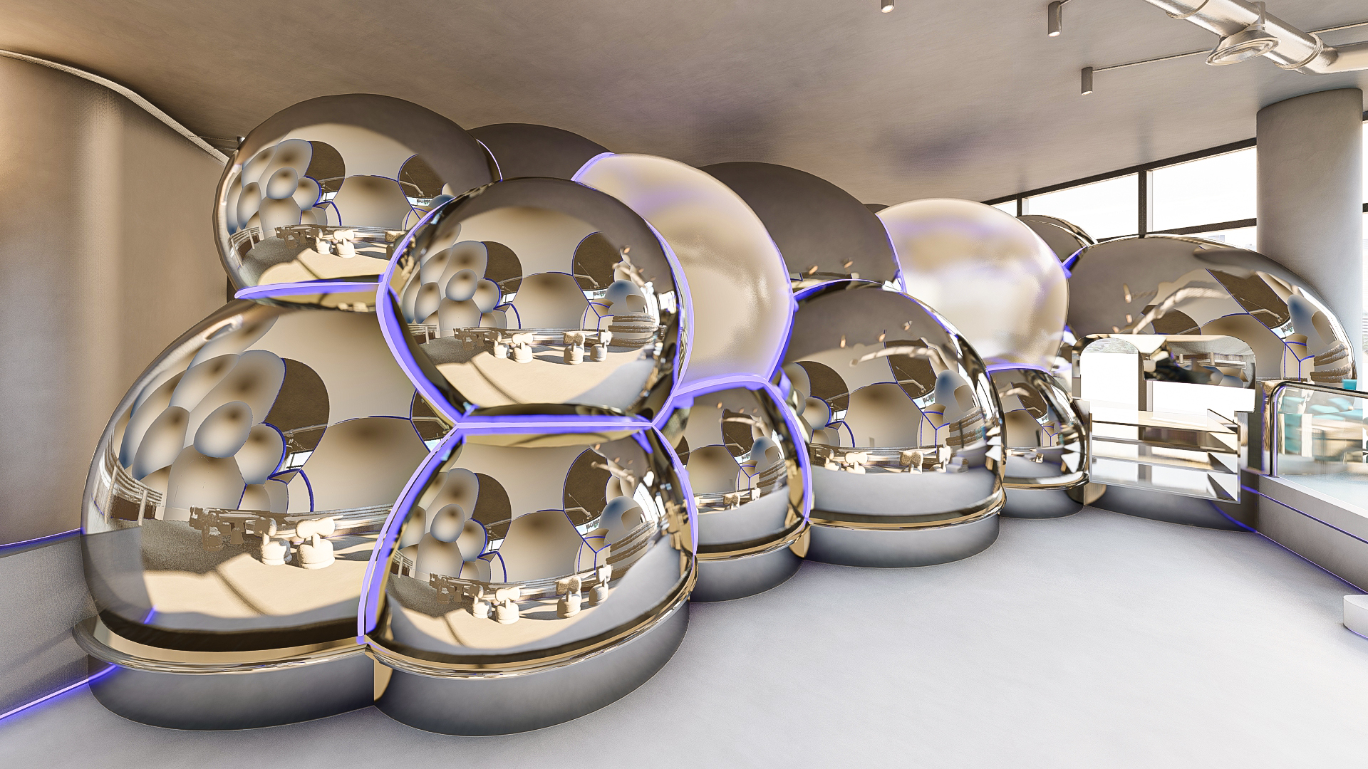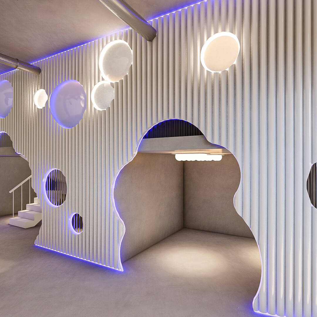 Bubble Gate is designed as an immersive indoor playground where a monumental mirrored bubble anchors the space. Play areas, interactive zones, and vibrant experiences unfold around it, while the LED-lit interior of the bubble creates a striking and celebratory focal point.