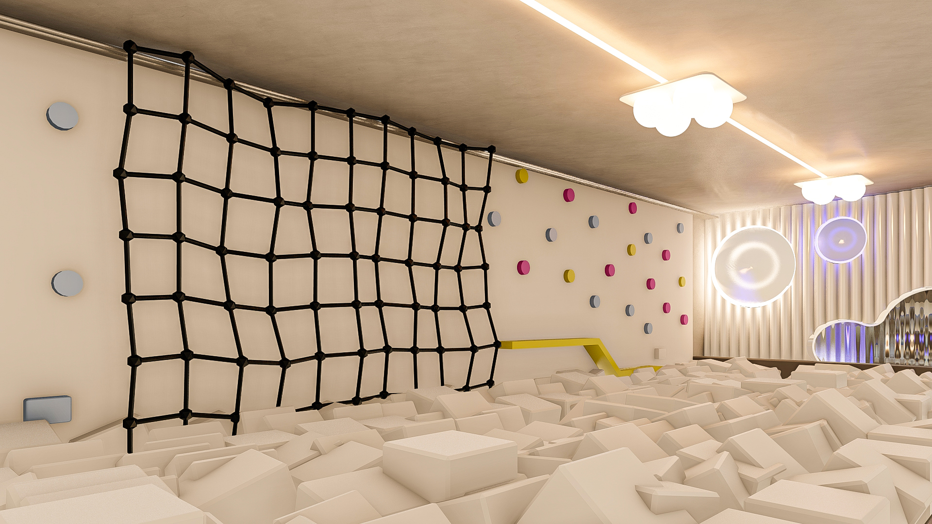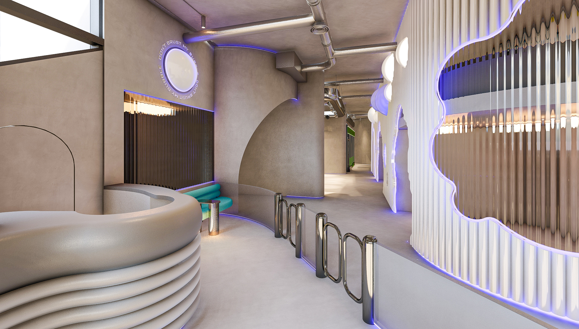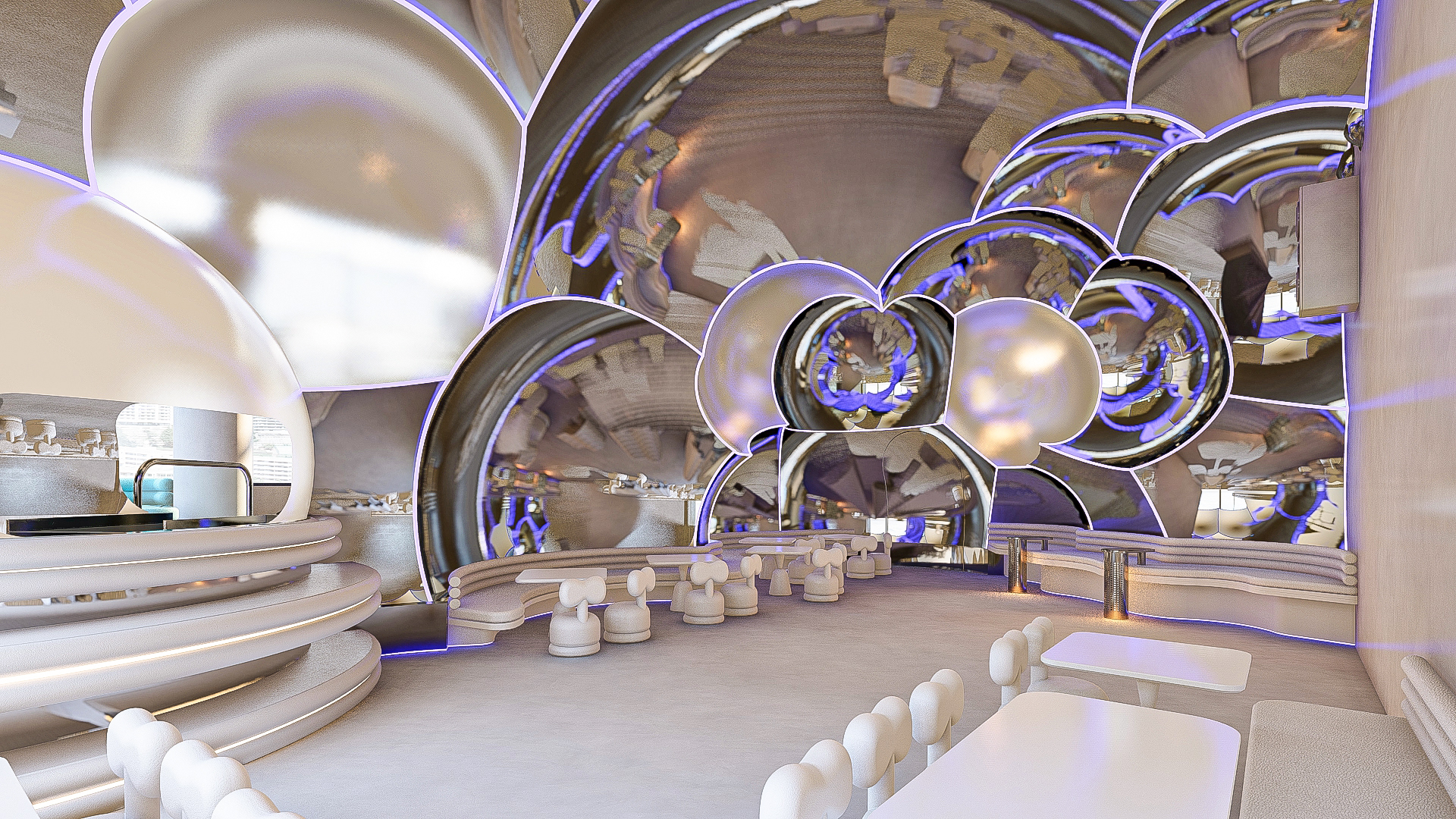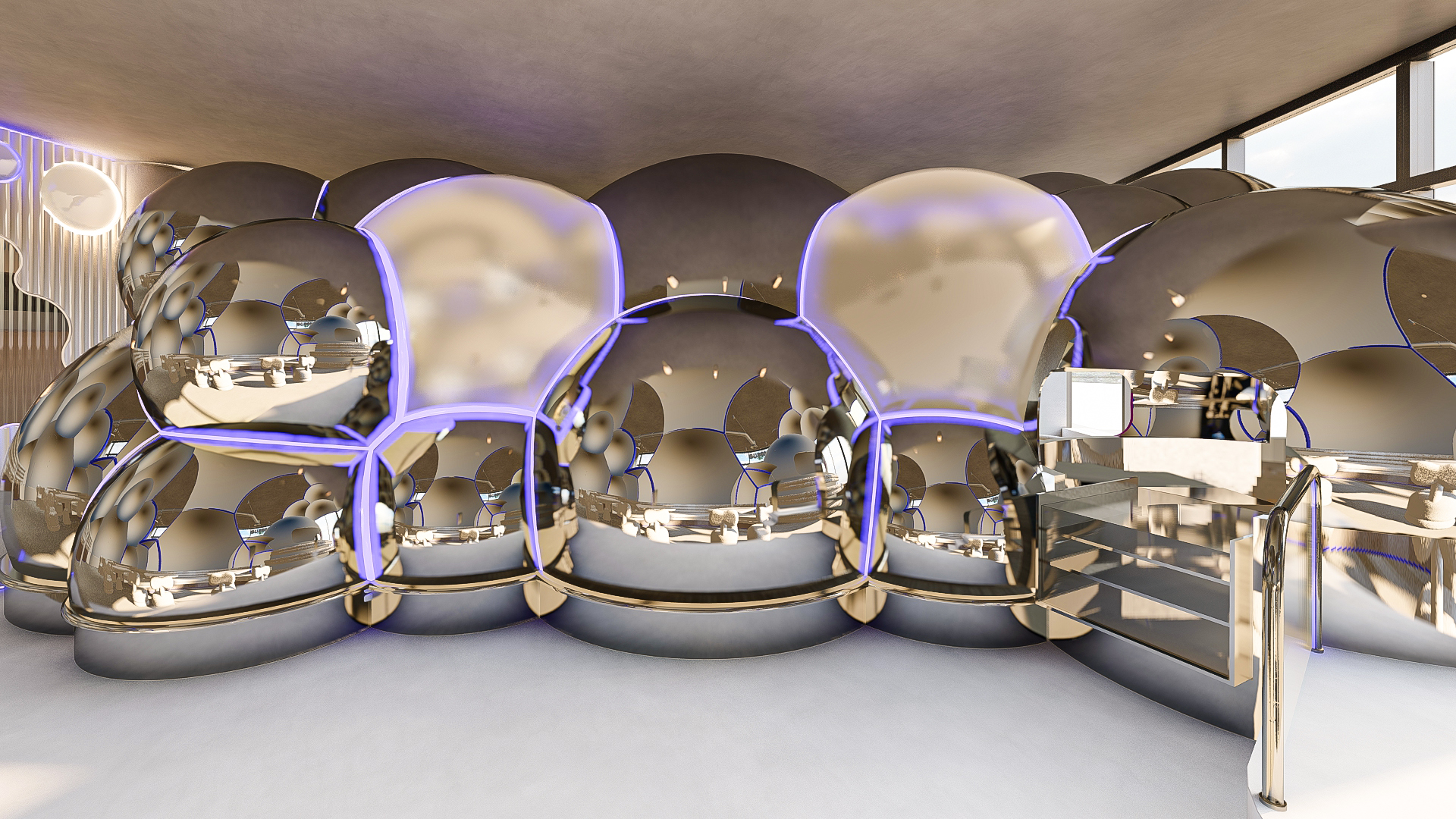 Bubble Gate is designed as an immersive indoor playground where a monumental mirrored bubble anchors the space. Play areas, interactive zones, and vibrant experiences unfold around it, while the LED-lit interior of the bubble creates a striking and celebratory focal point.