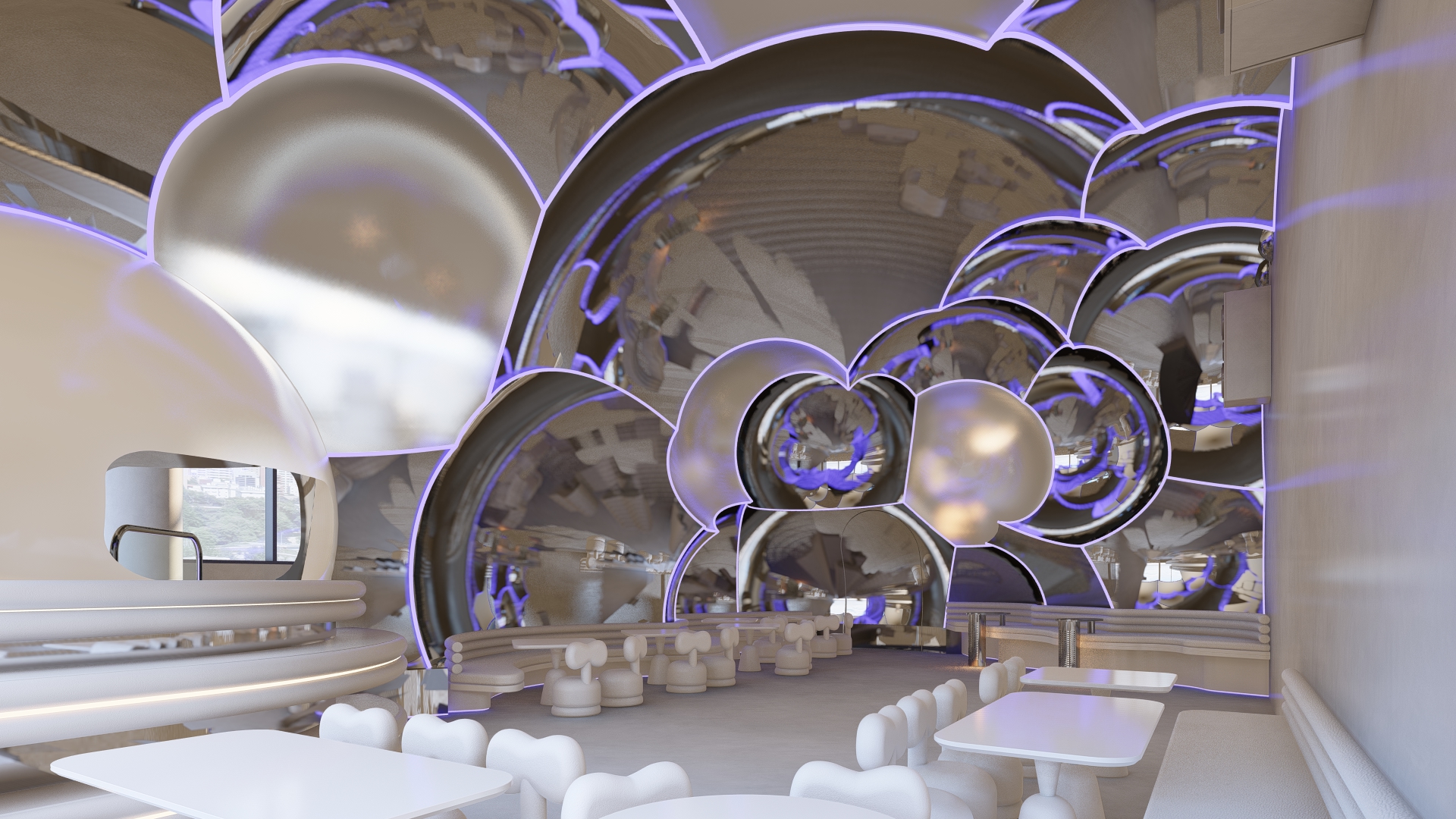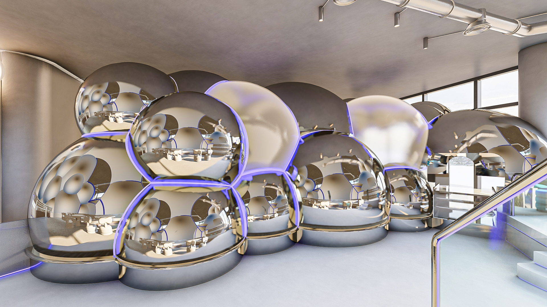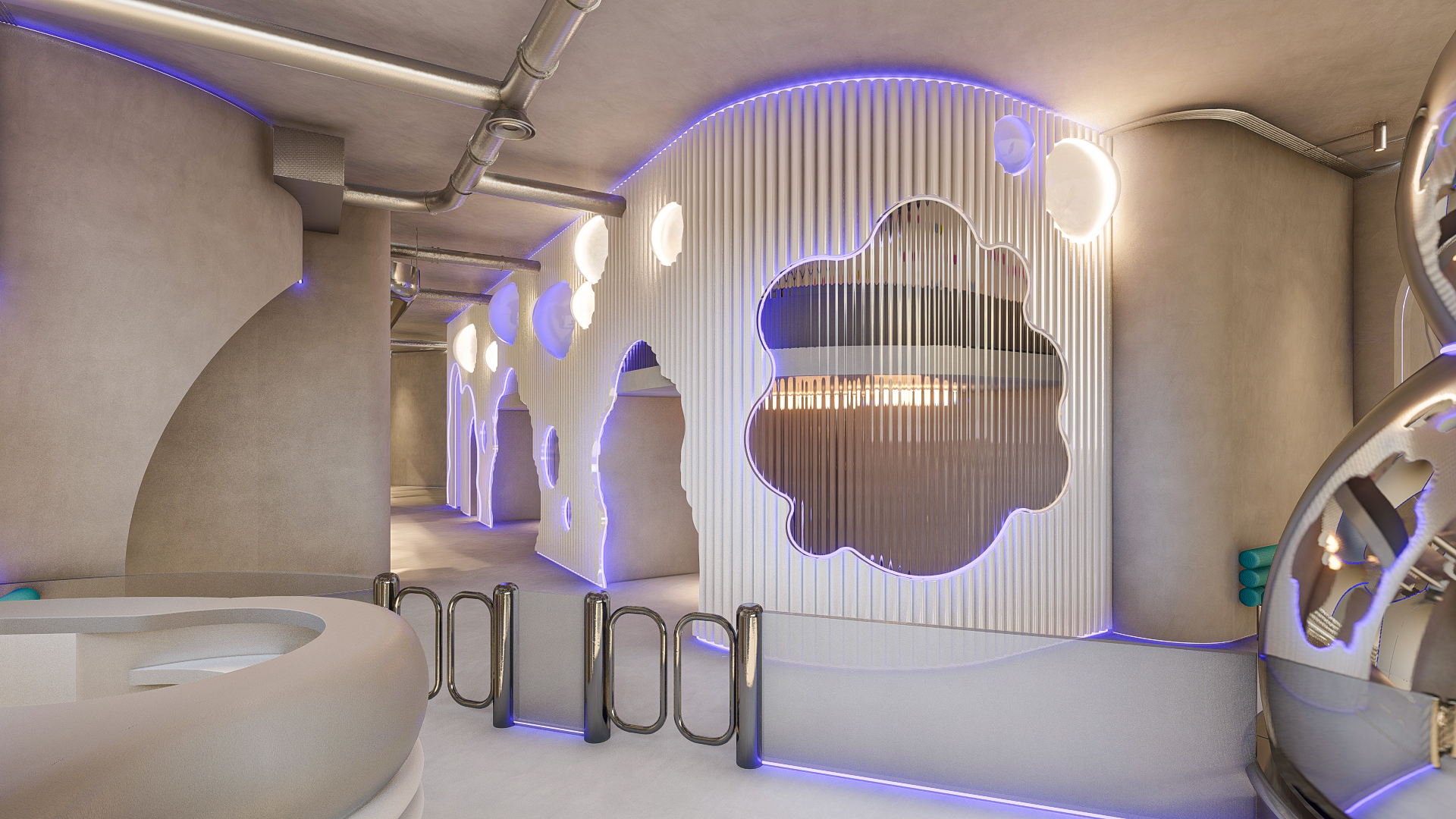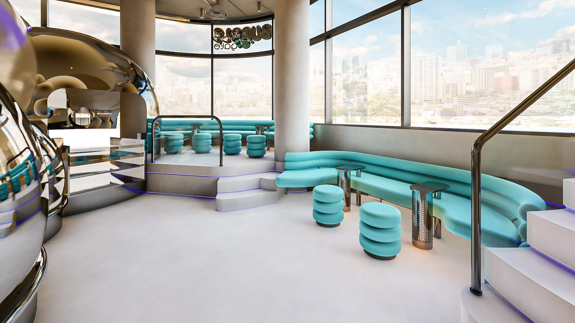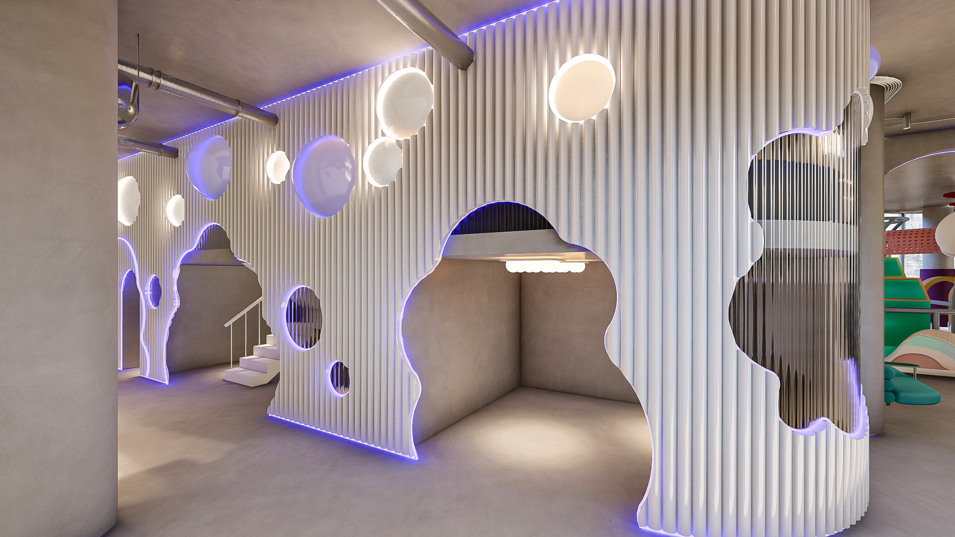 Bubble Gate is designed as an immersive indoor playground where a monumental mirrored bubble anchors the space. Play areas, interactive zones, and vibrant experiences unfold around it, while the LED-lit interior of the bubble creates a striking and celebratory focal point.