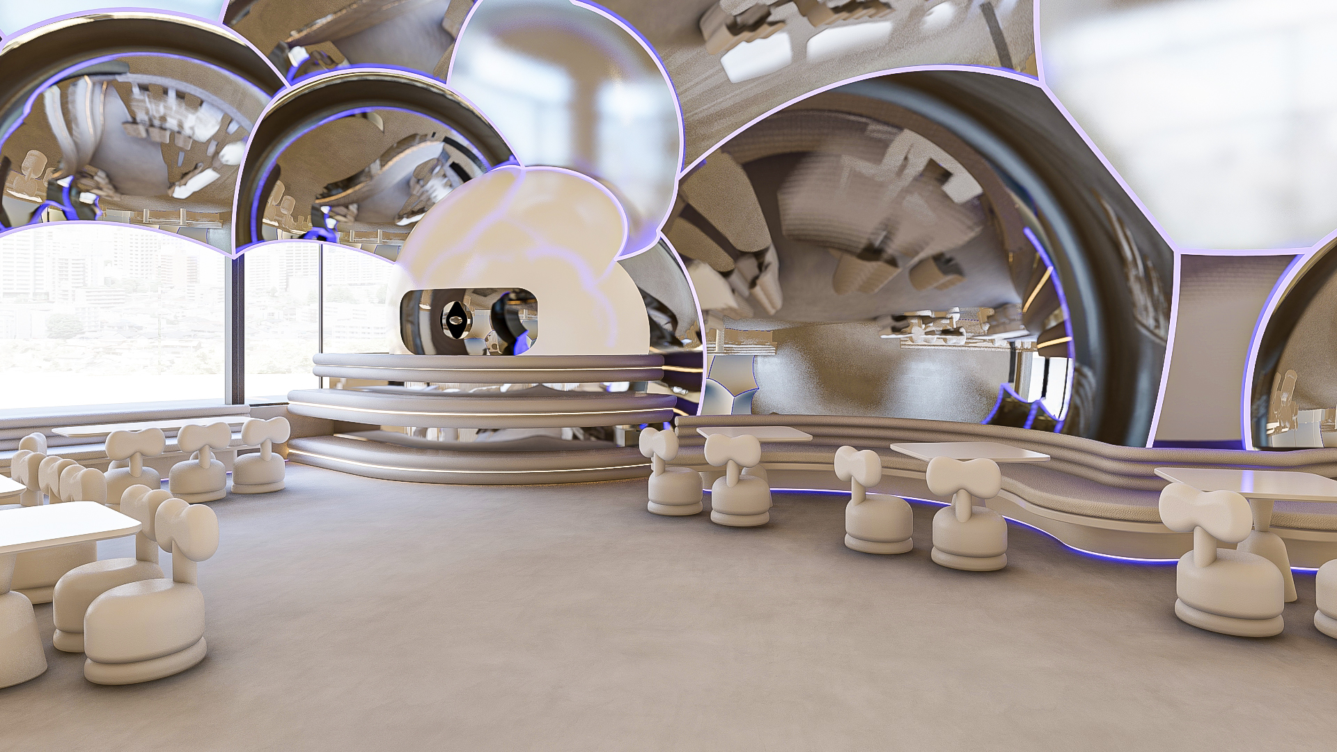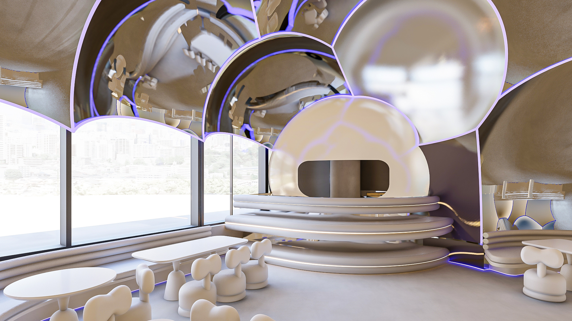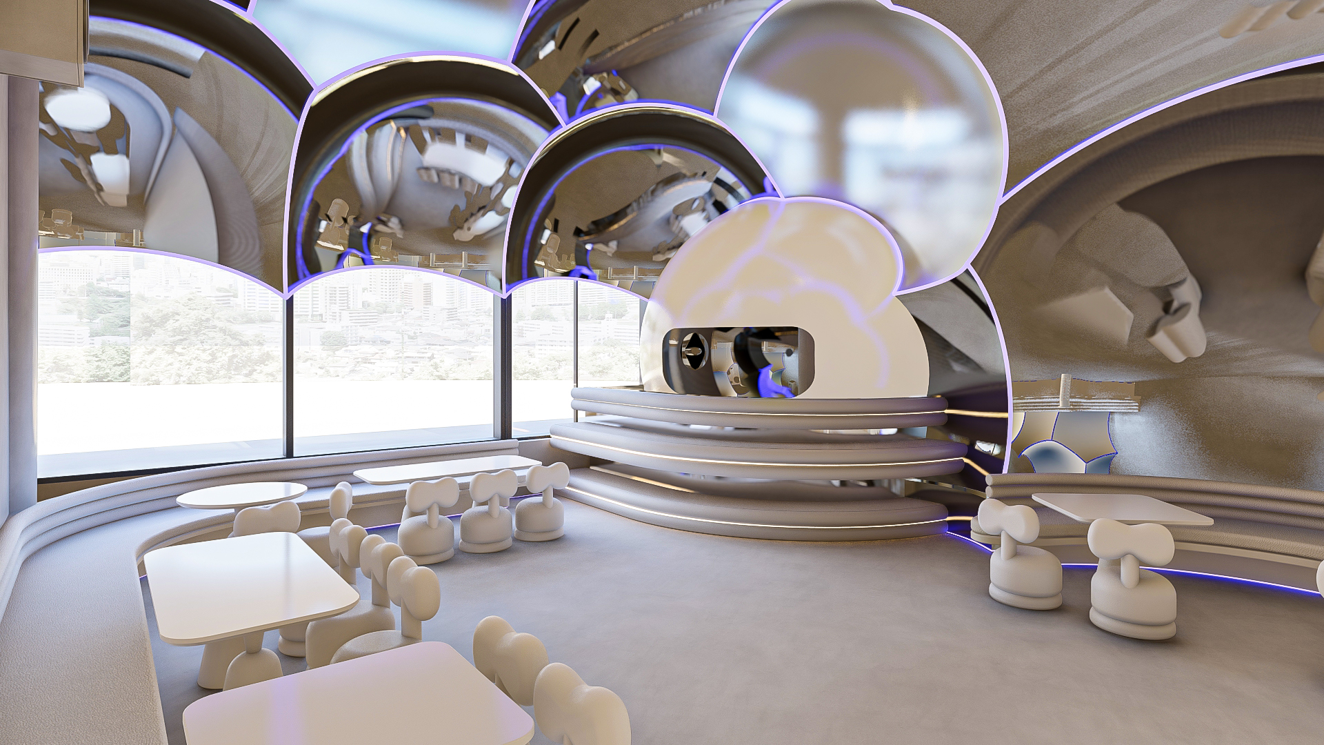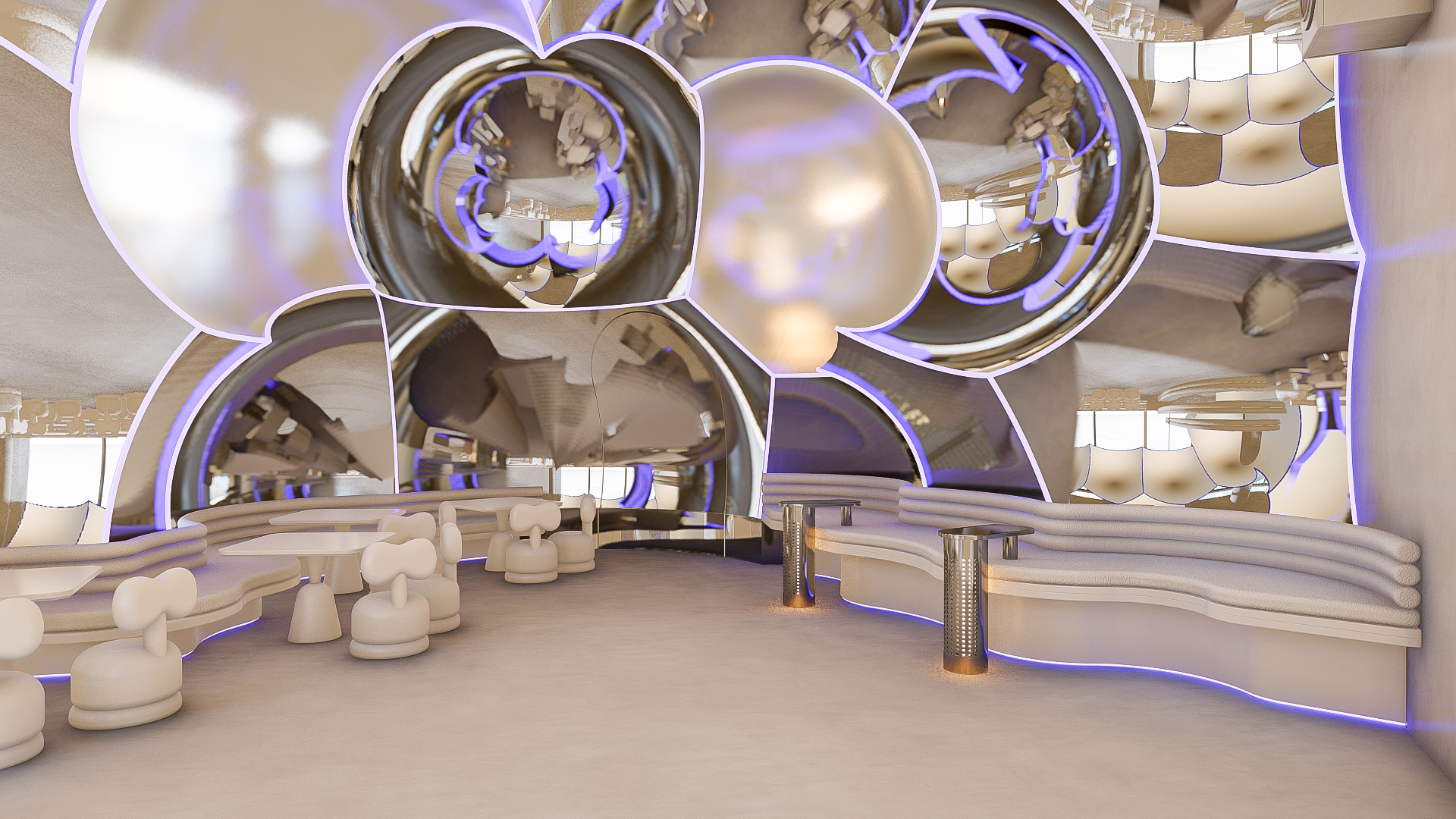 Bubble Gate is designed as an immersive indoor playground where a monumental mirrored bubble anchors the space. Play areas, interactive zones, and vibrant experiences unfold around it, while the LED-lit interior of the bubble creates a striking and celebratory focal point.