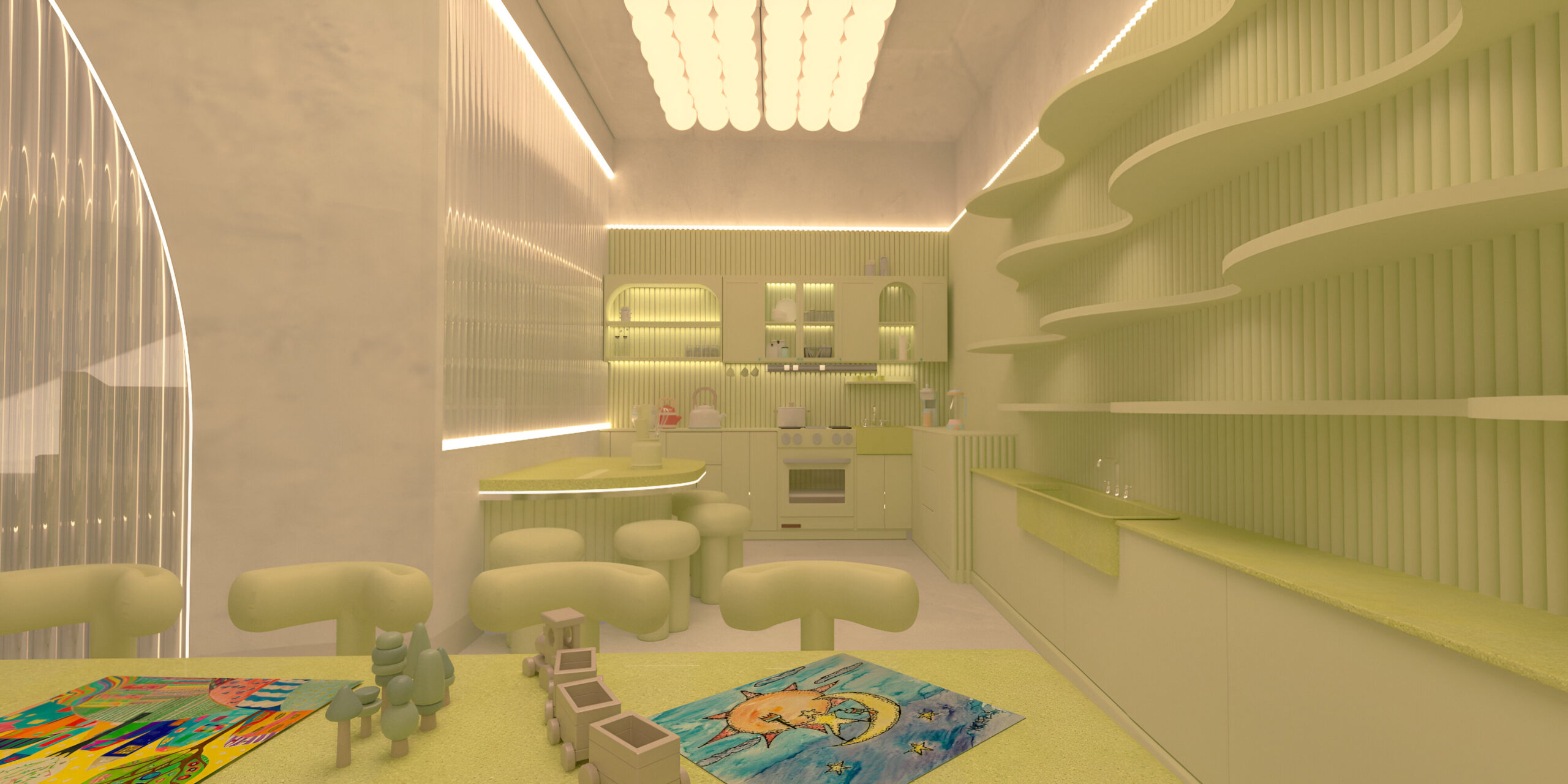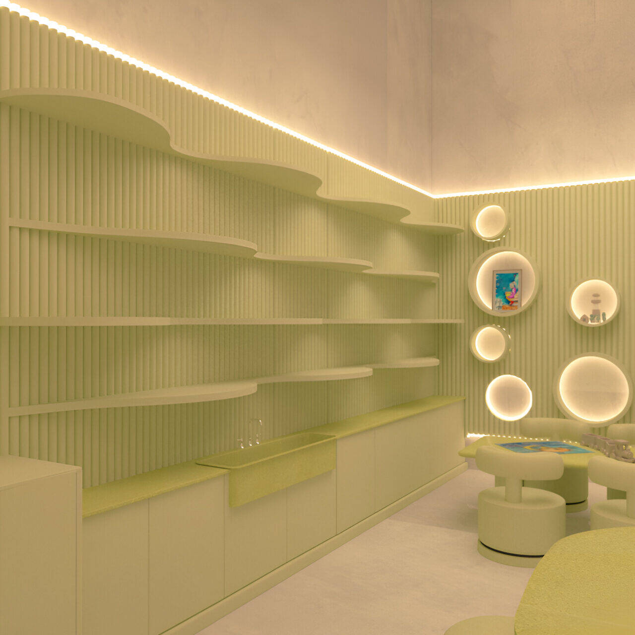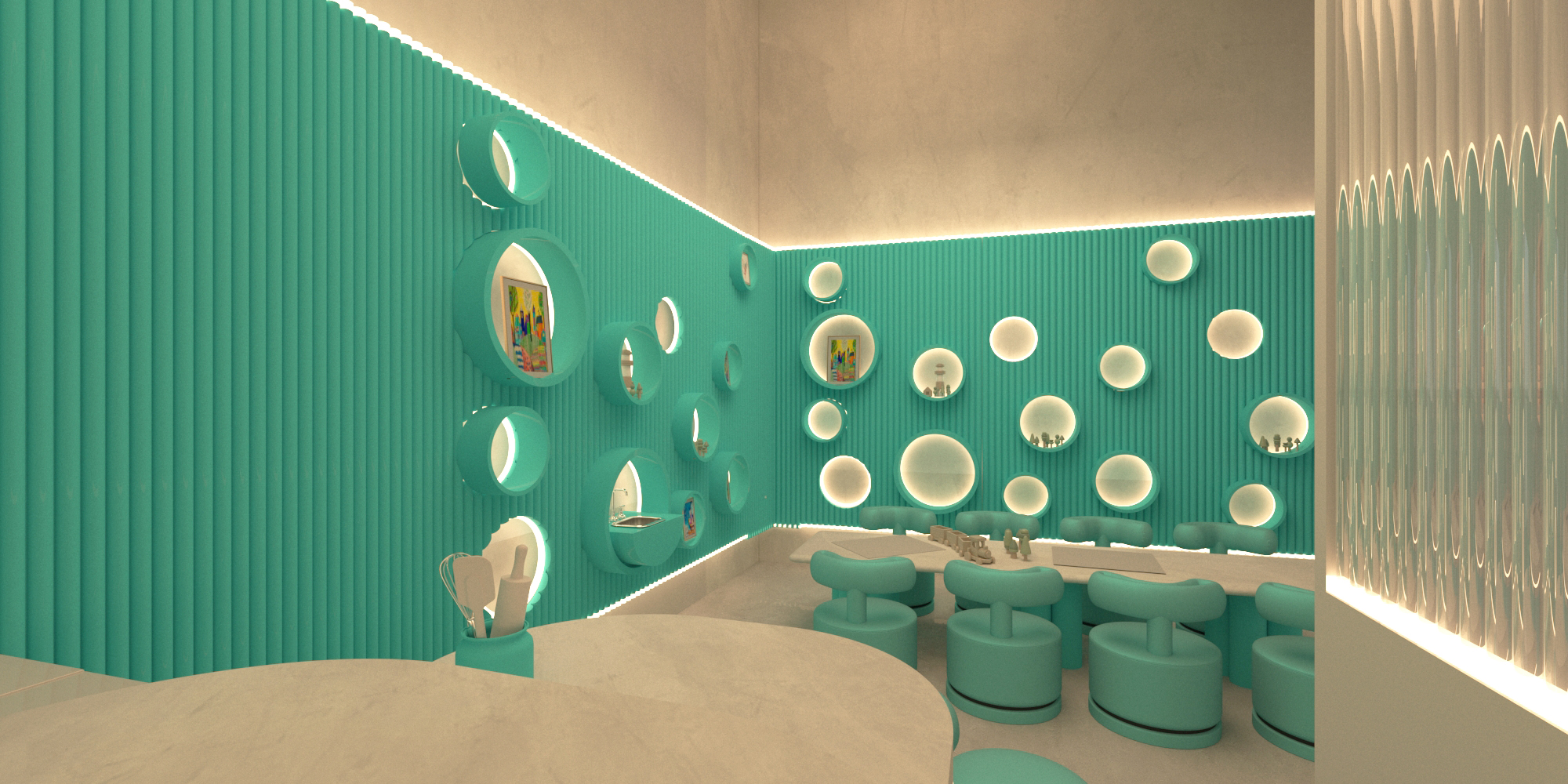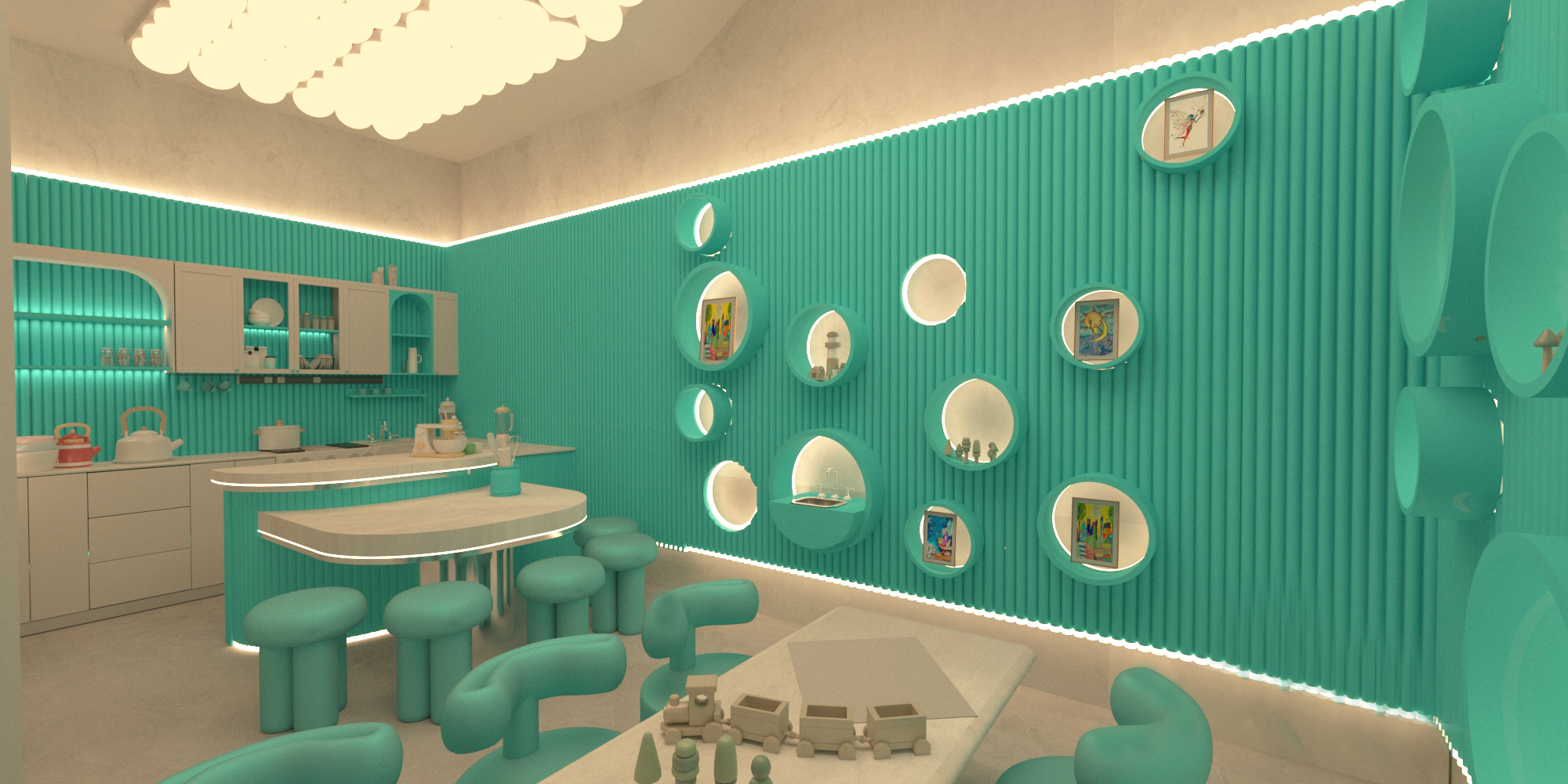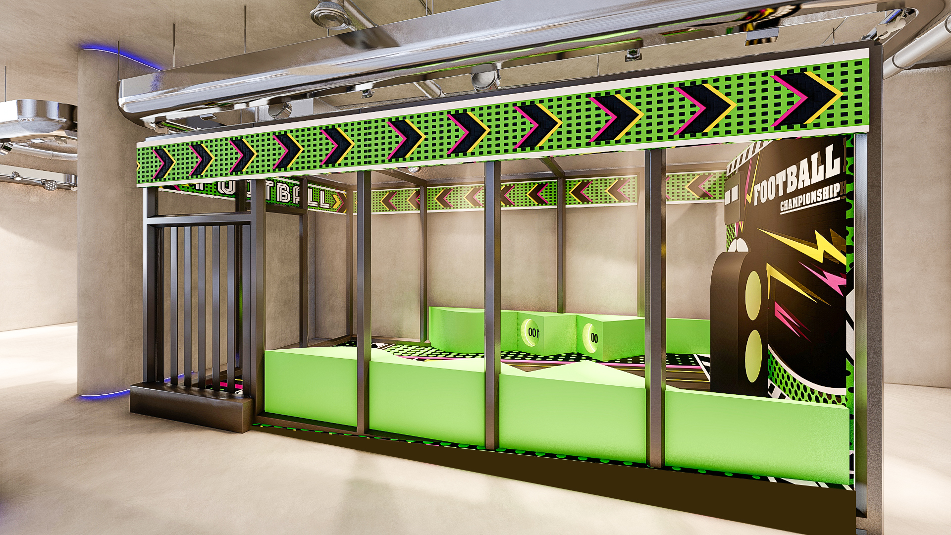 Bubble Gate is designed as an immersive indoor playground where a monumental mirrored bubble anchors the space. Play areas, interactive zones, and vibrant experiences unfold around it, while the LED-lit interior of the bubble creates a striking and celebratory focal point.