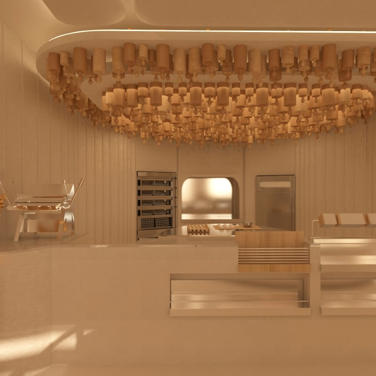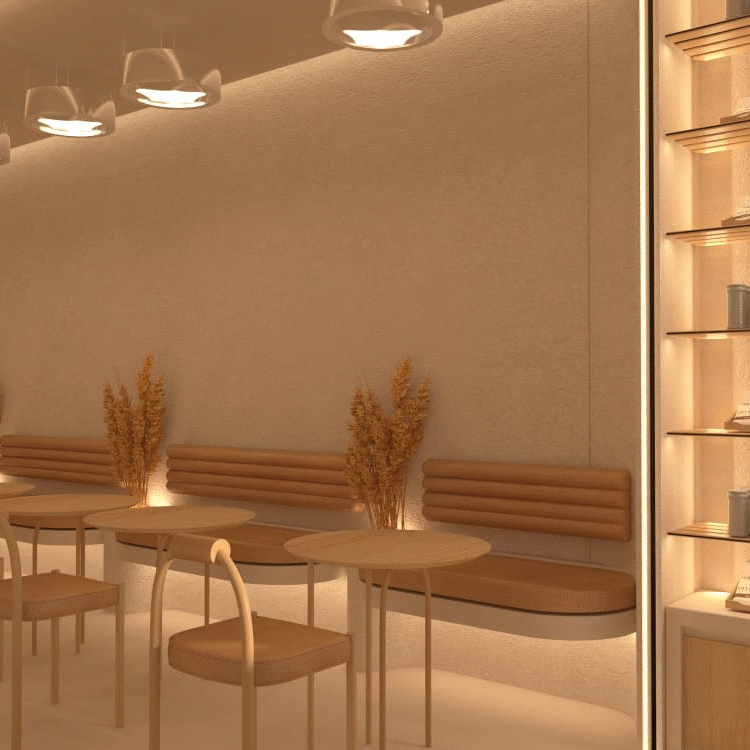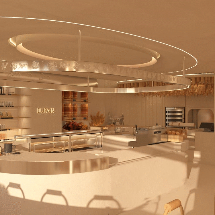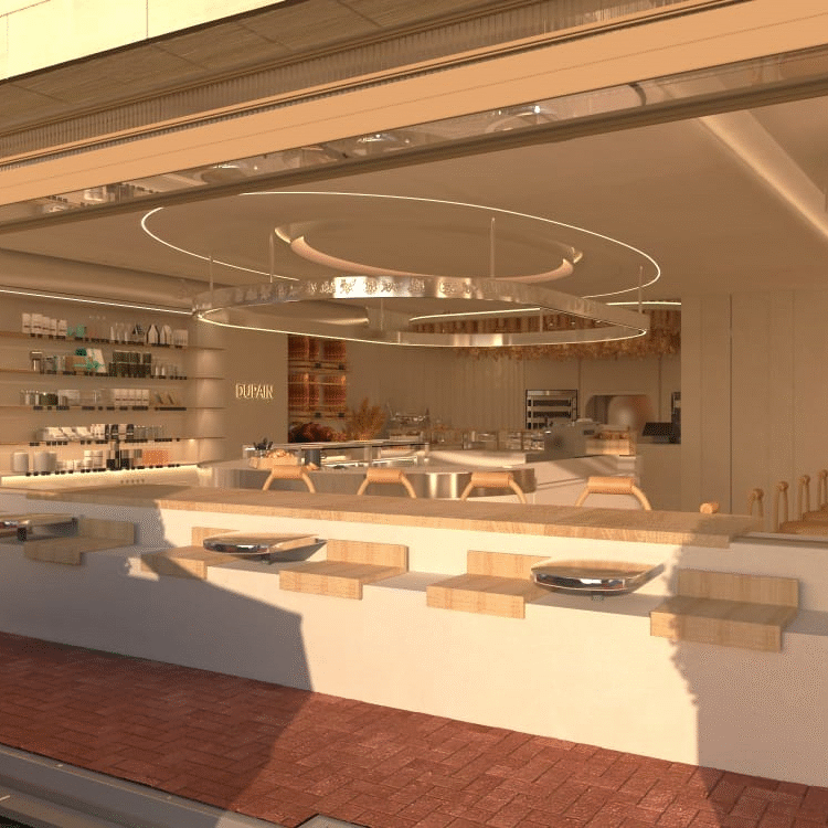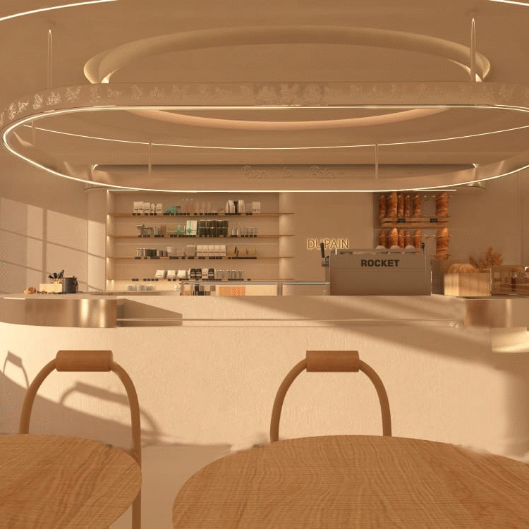 Dupain Bakery in Saifi Village merges modern design with the timeless appeal of a classic bakery. These 3D renderings showcase the inviting atmosphere, where warm tones, natural materials, and sleek finishes create a space as inviting as the freshly baked goods inside. Designed to capture both the essence of French bakery culture and the vibrant energy of Beirut, Dupain offers a unique experience in every detail.