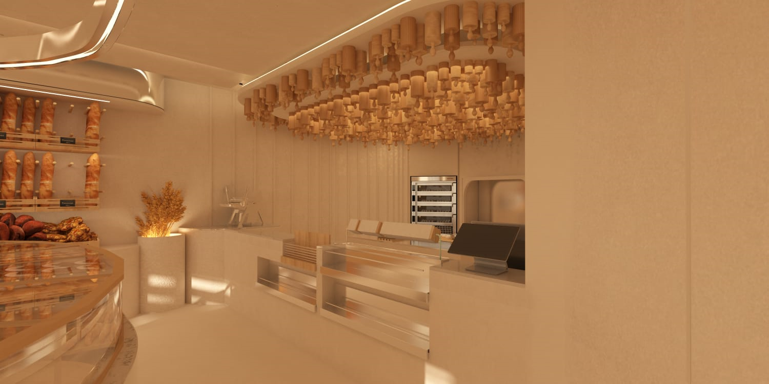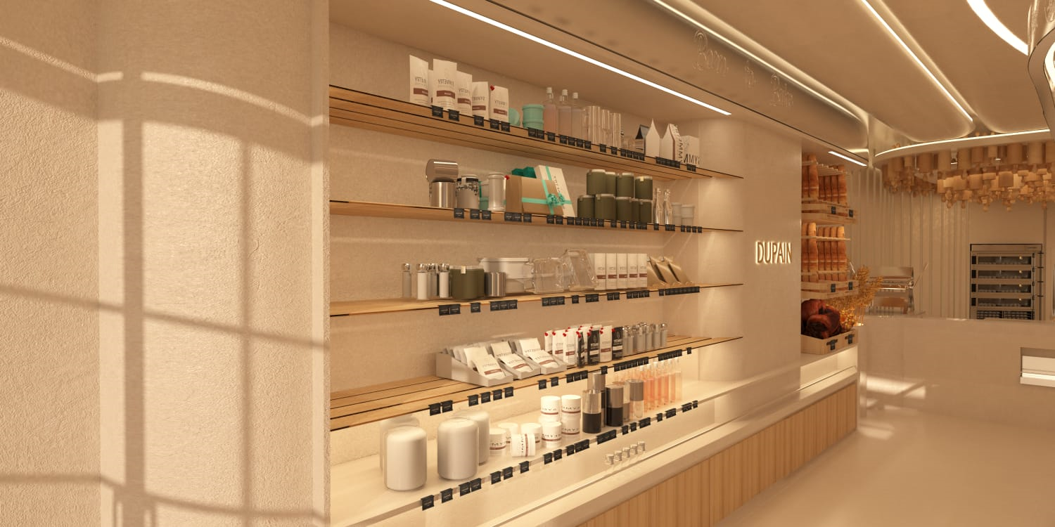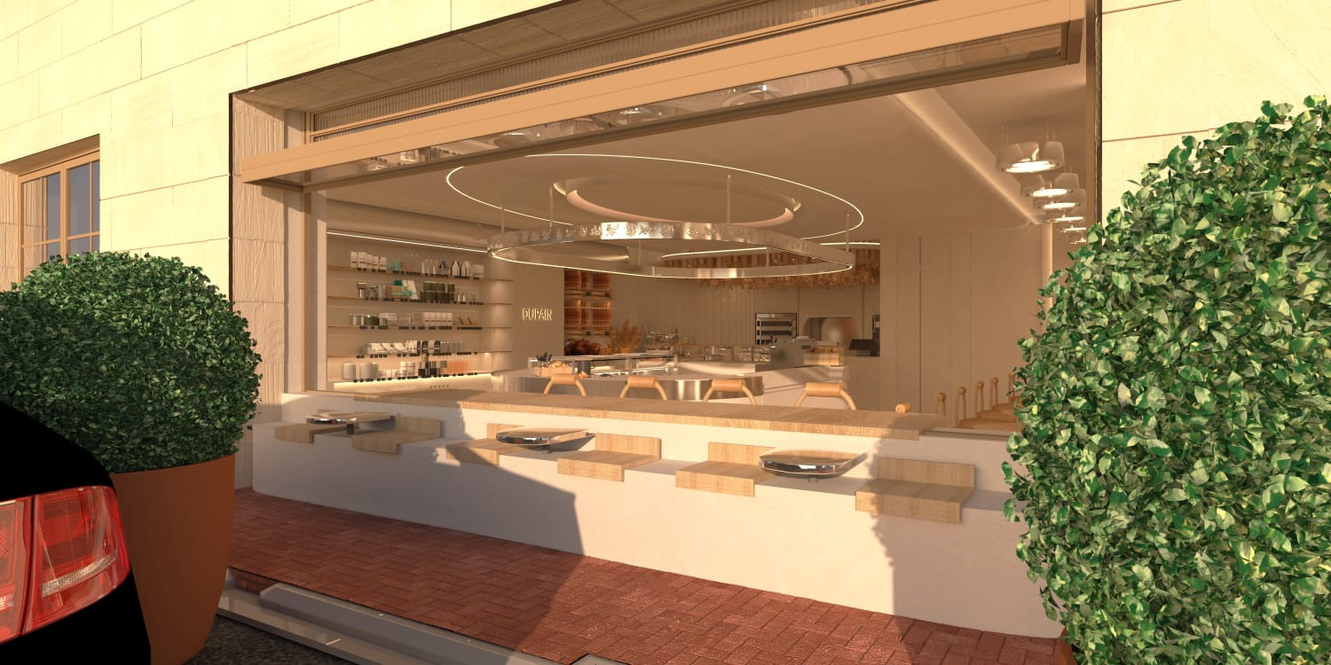 Dupain Bakery in Saifi Village merges modern design with the timeless appeal of a classic bakery. These 3D renderings showcase the inviting atmosphere, where warm tones, natural materials, and sleek finishes create a space as inviting as the freshly baked goods inside. Designed to capture both the essence of French bakery culture and the vibrant energy of Beirut, Dupain offers a unique experience in every detail.