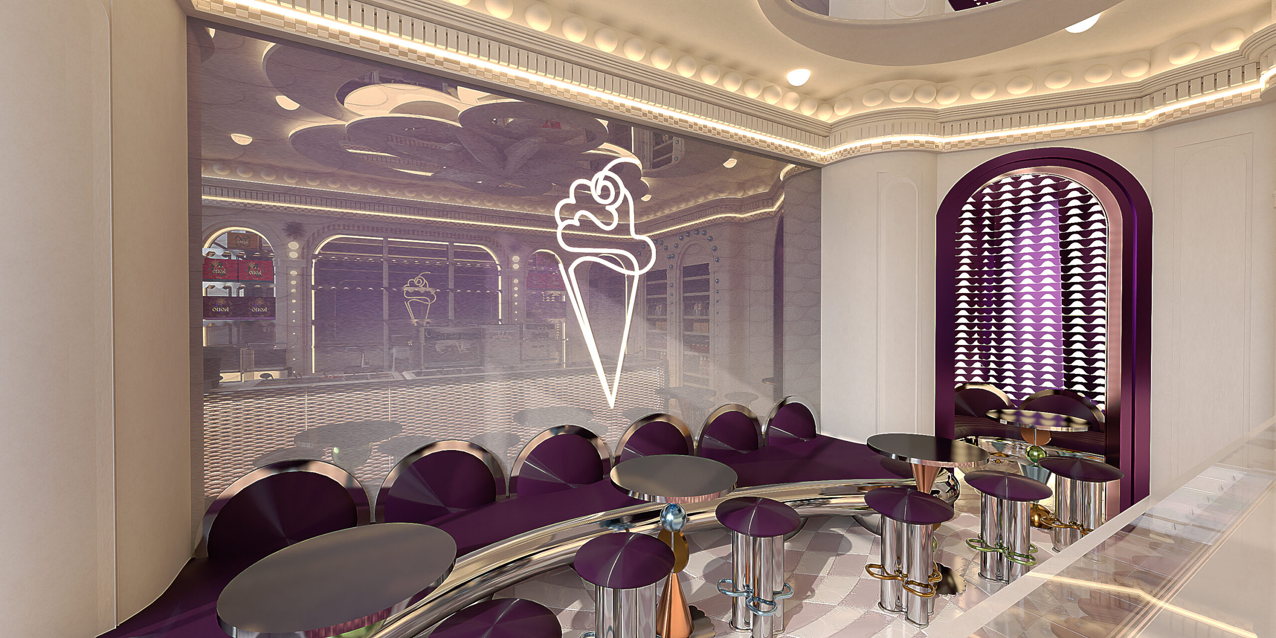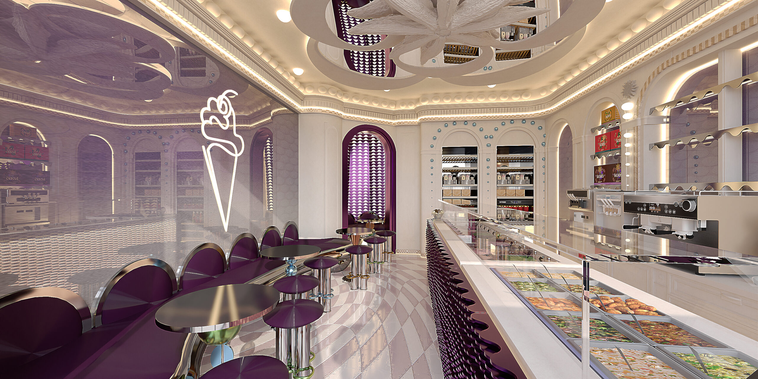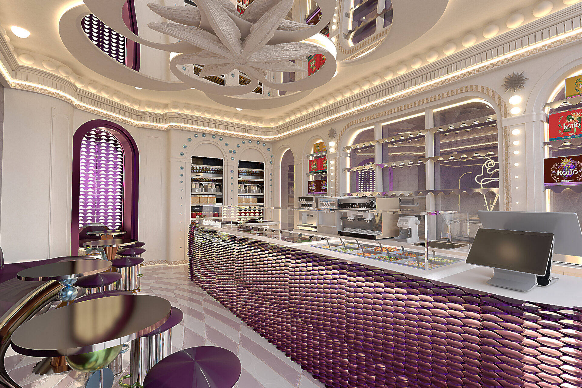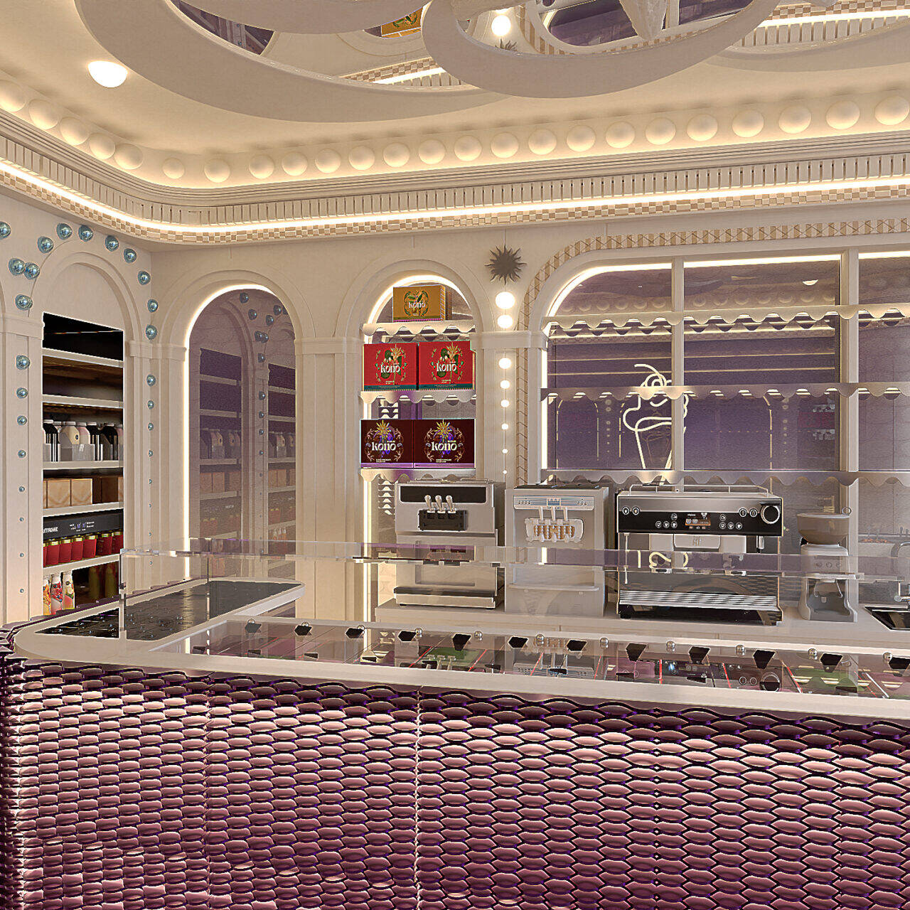 KONO KONO Year2026 Services Interior Design Kono is a gelato concept in Beirut with a contemporary interior that feels fun and inviting. Clean lines, thoughtful spatial planning, and subtle pops of color create a welcoming environment that reflects the brand’s approachable personality. 3D VISUALIZATION PrevNext