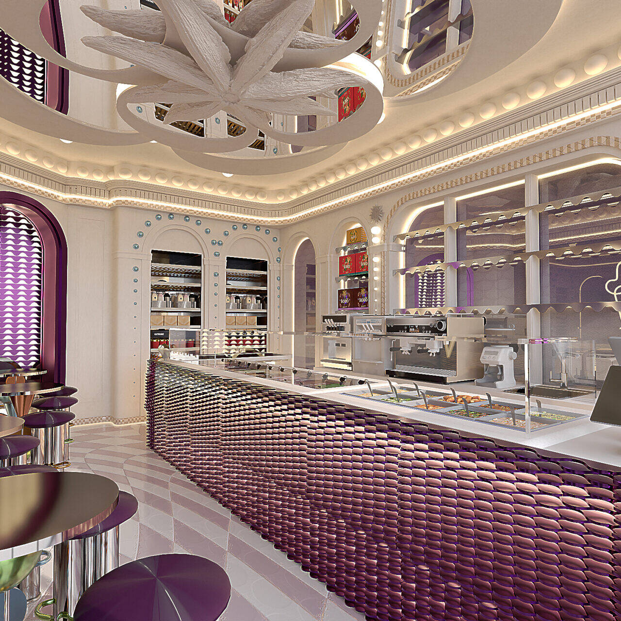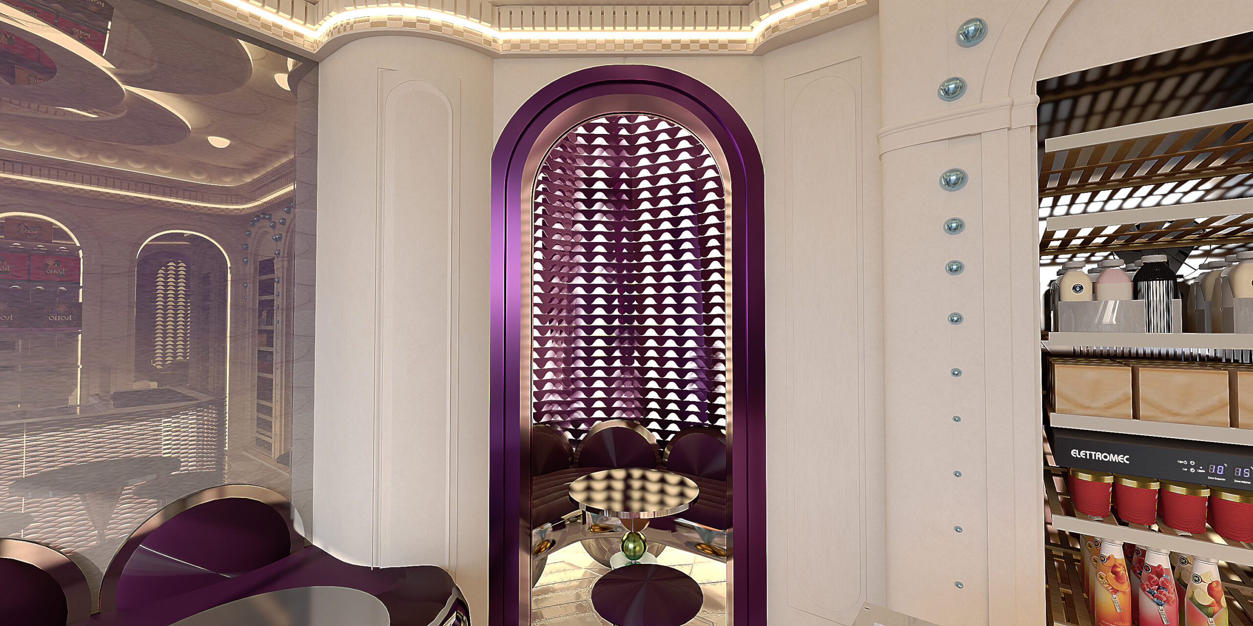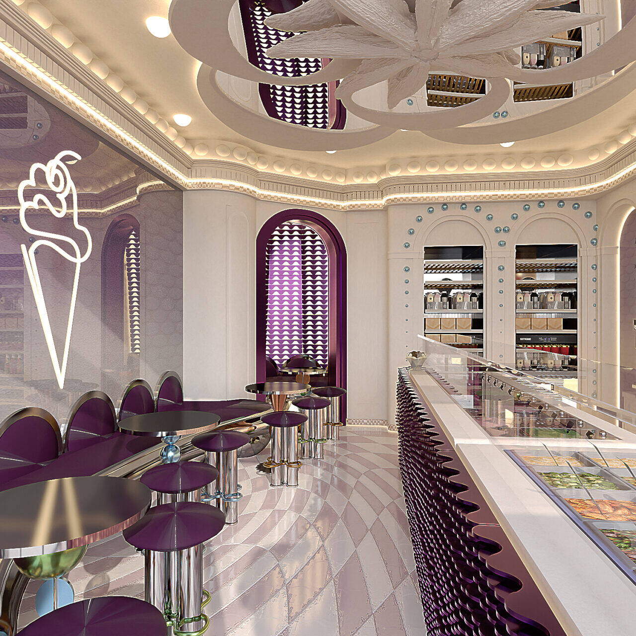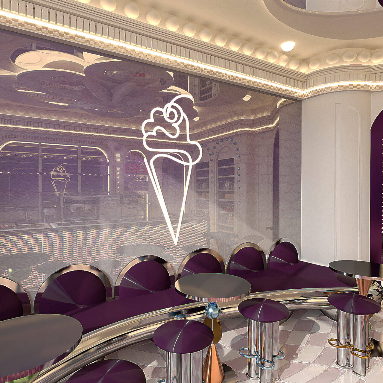 KONO KONO Year2026 Services Interior Design Kono is a gelato concept in Beirut with a contemporary interior that feels fun and inviting. Clean lines, thoughtful spatial planning, and subtle pops of color create a welcoming environment that reflects the brand’s approachable personality. 3D VISUALIZATION PrevNext