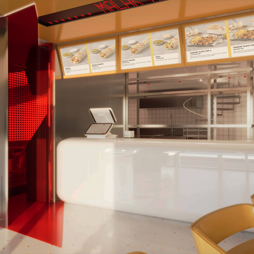 L’Artquitecte led the complete spatial rebrand of Malak Al Tawouk, redefining the brand’s architectural identity to support its evolution into a scalable franchise model. The project goes beyond aesthetic renewal, introducing a cohesive design language that modernizes the customer experience while preserving the brand’s strong market presence. Through strategic layout planning, updated materiality, and a refreshed visual direction, the concept establishes a bold, recognizable prototype designed for consistent replication across future locations.