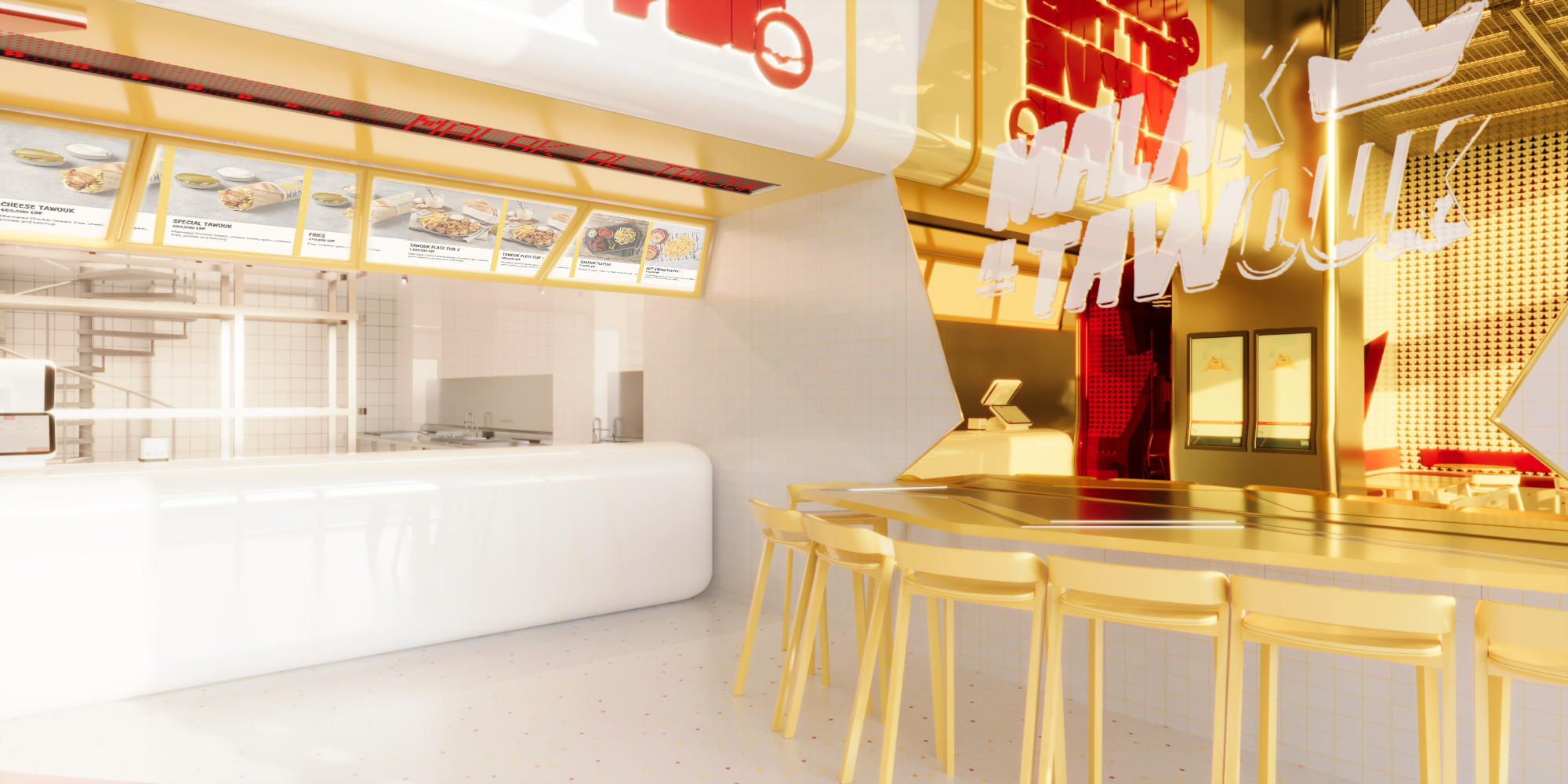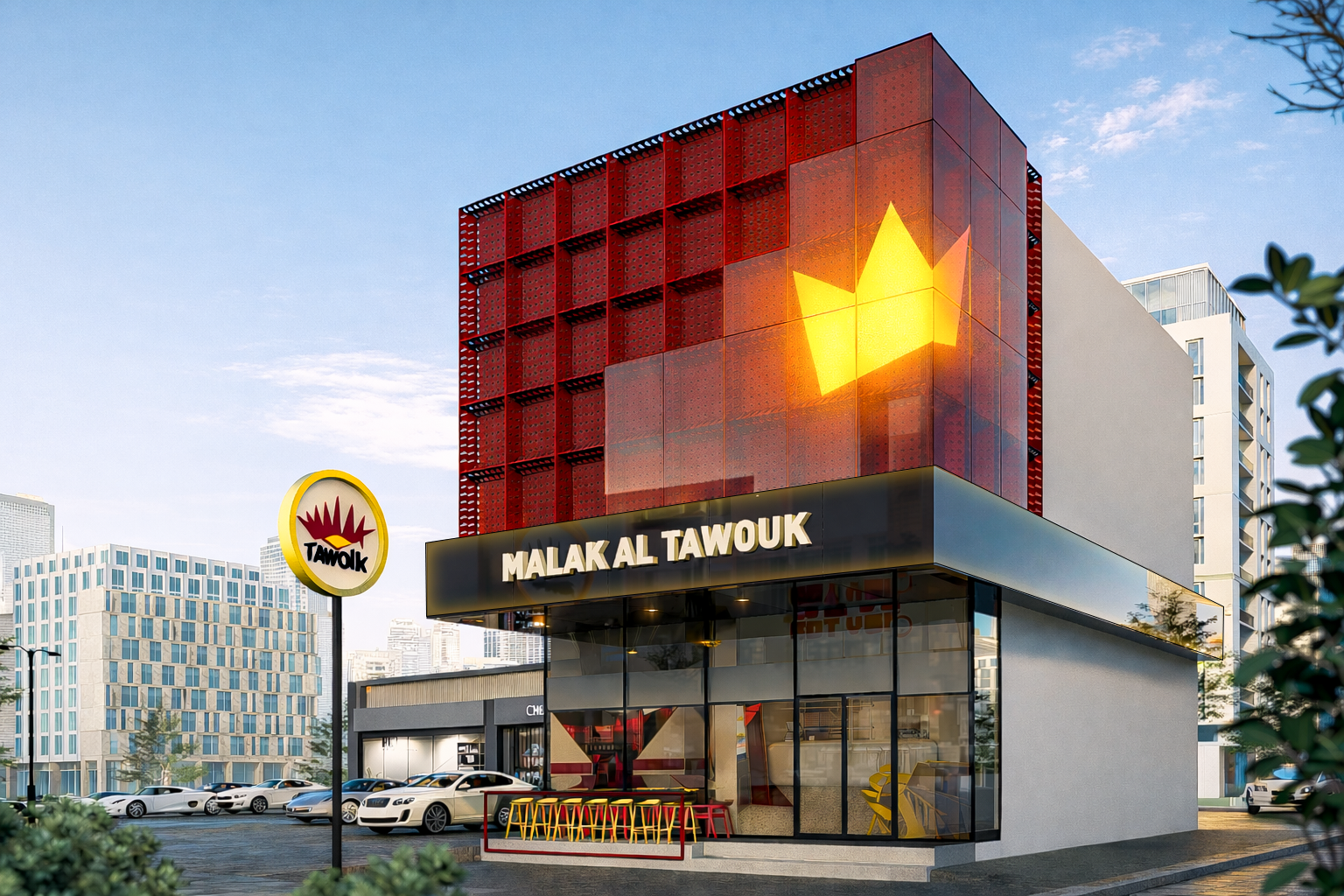 L’Artquitecte led the complete spatial rebrand of Malak Al Tawouk, redefining the brand’s architectural identity to support its evolution into a scalable franchise model. The project goes beyond aesthetic renewal, introducing a cohesive design language that modernizes the customer experience while preserving the brand’s strong market presence. Through strategic layout planning, updated materiality, and a refreshed visual direction, the concept establishes a bold, recognizable prototype designed for consistent replication across future locations.