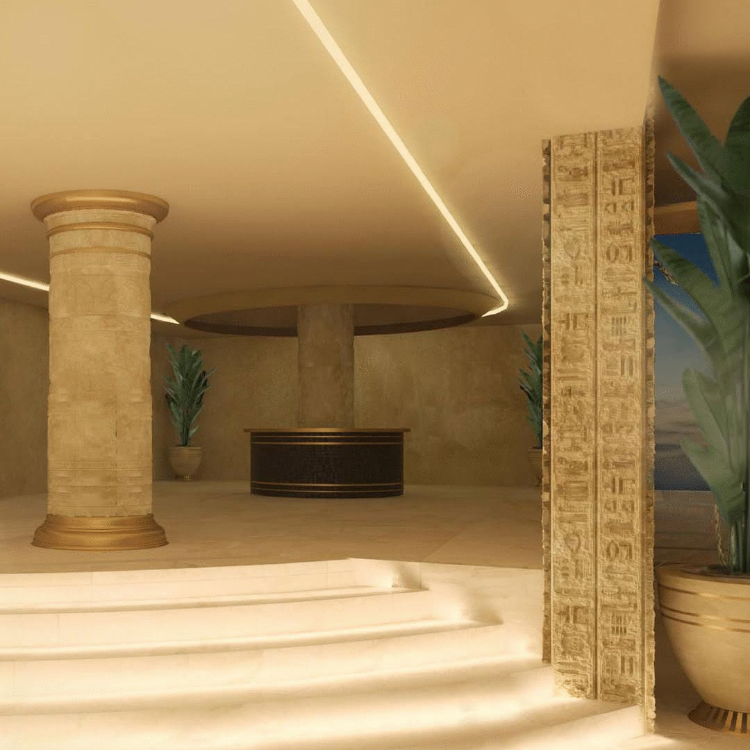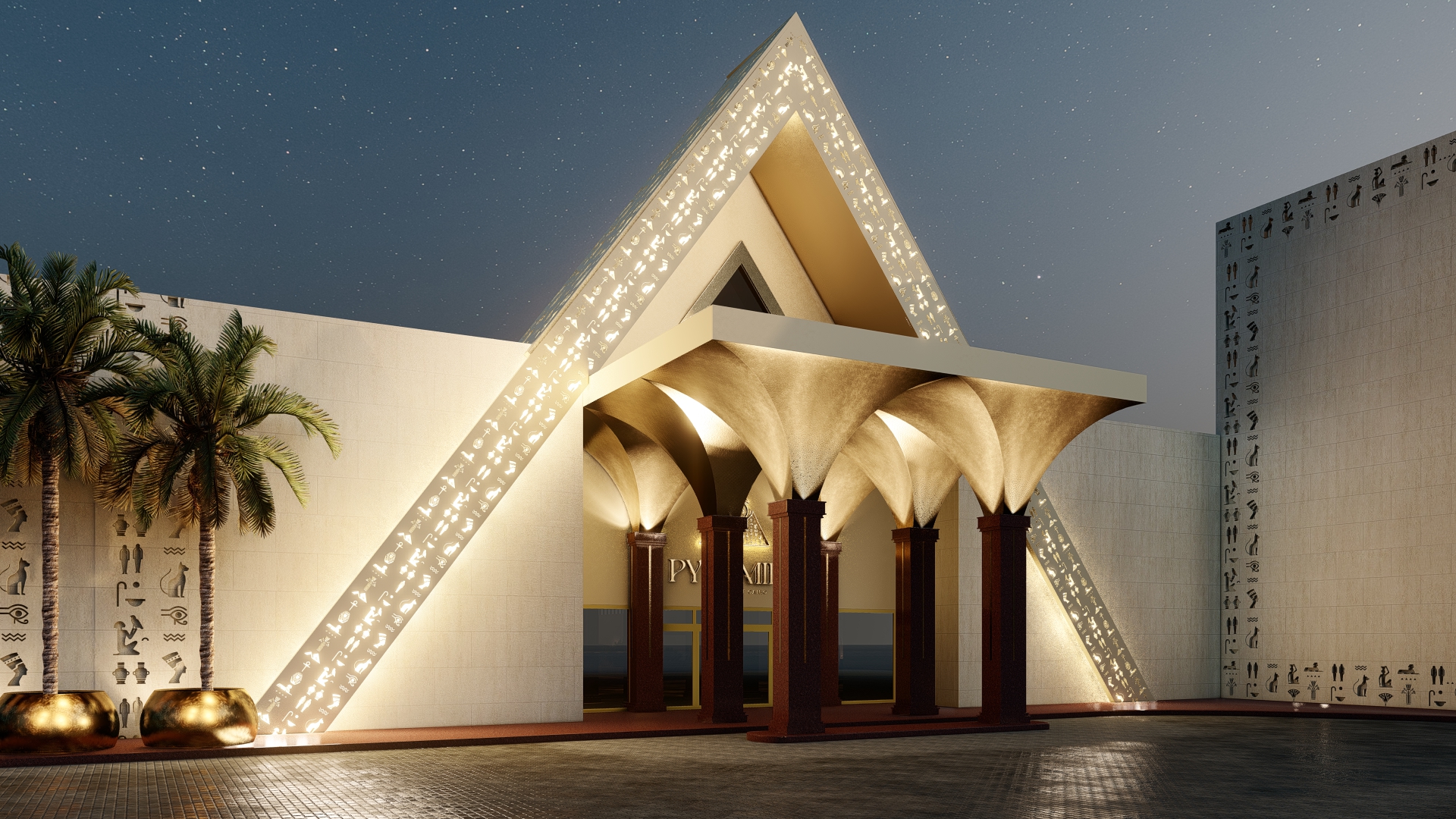 Inspired by the timeless geometry and mystique of ancient Egypt, The Pyramid Project reimagines classic form in a modern design language. Our 3D concept blends monumental structure with clean lines, textured stone finishes, and ambient lighting—paying homage to the grandeur of the pyramids while creating a bold, contemporary architectural experience.