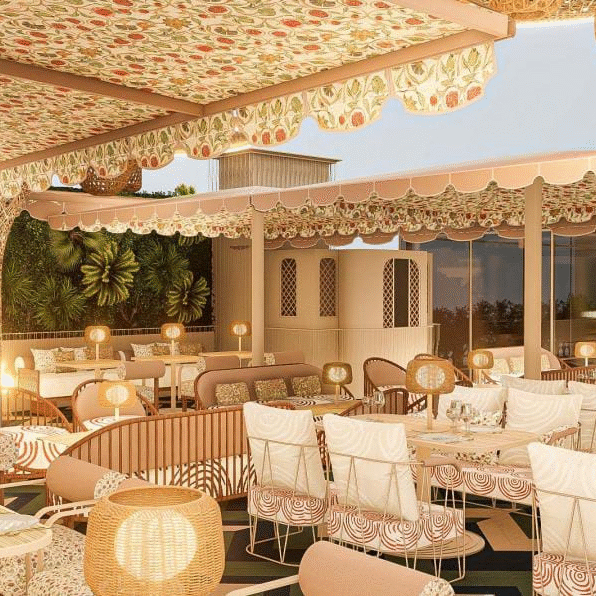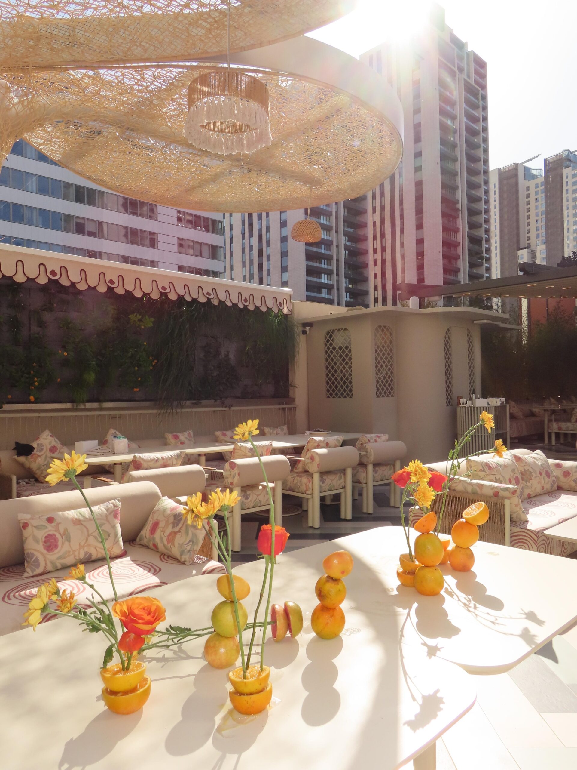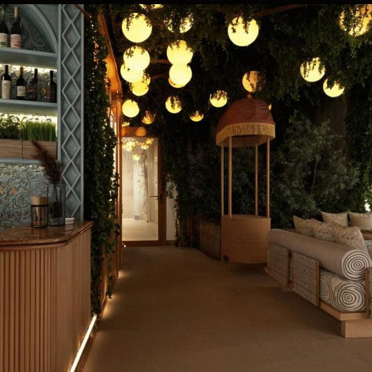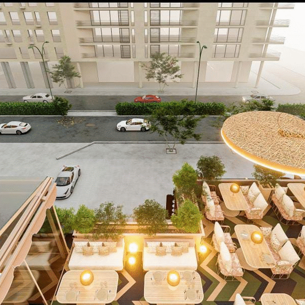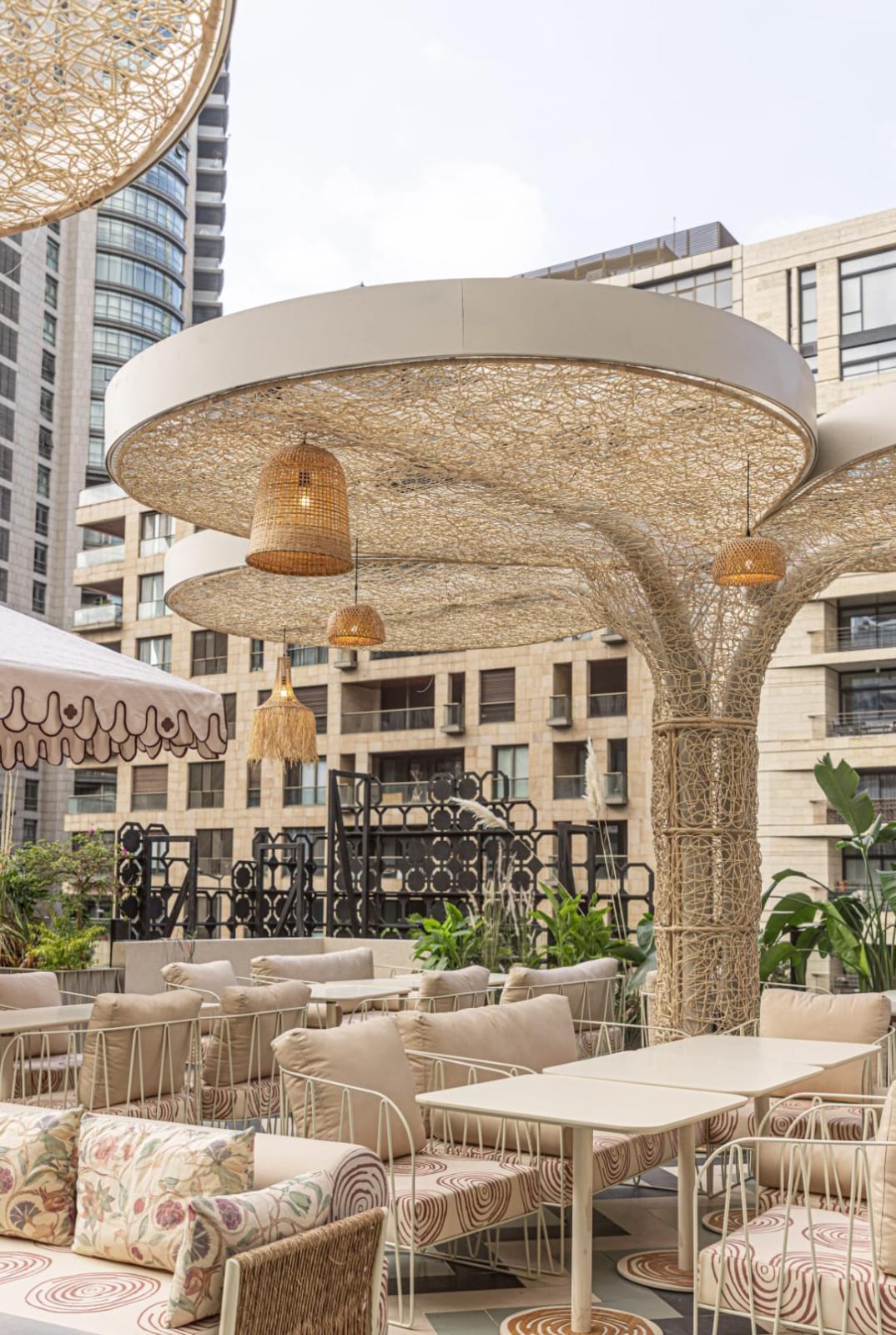 The semi-outdoor and outdoor areas of Skoya offer a seamless connection between architecture and nature. Surrounded by greenery, natural textures, and open skies, these spaces were designed to evoke calm, warmth, and effortless flow. Whether under soft shade or open air, every corner invites guests to relax, dine, and disconnect — all above the cityscape of Starco Downtown.