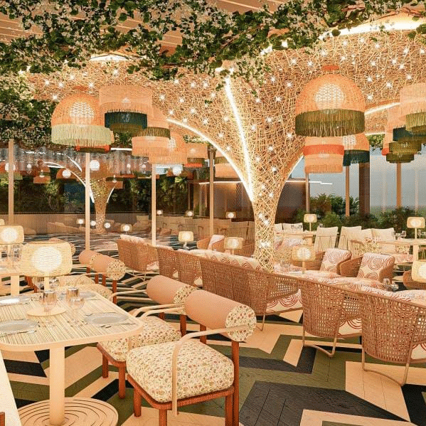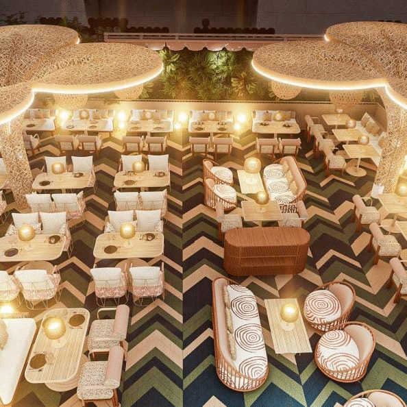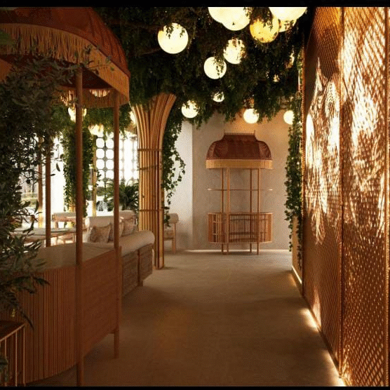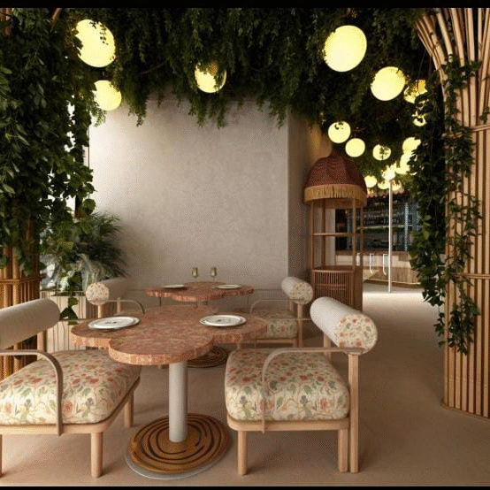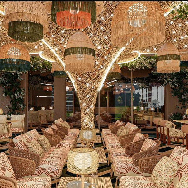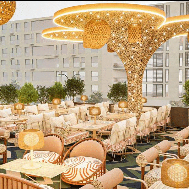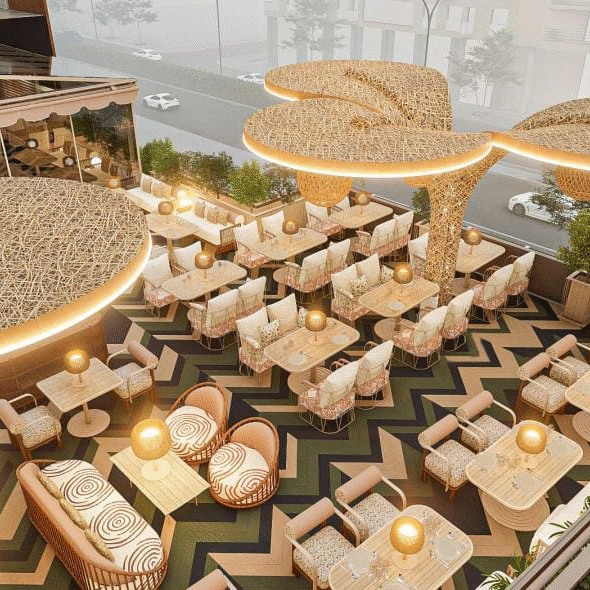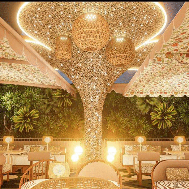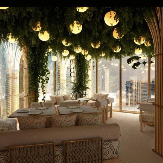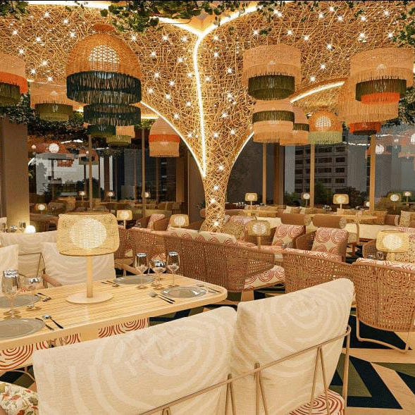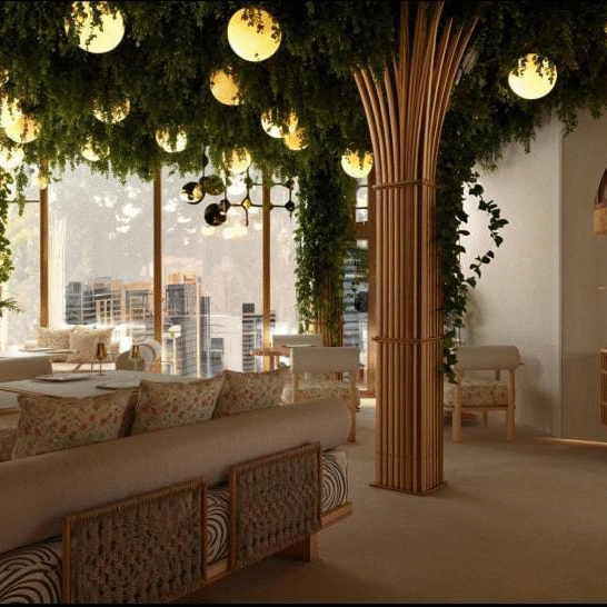 Discover Skoya, a rooftop restaurant concept inspired by the elegance and strength of the Sequoia tree. Nestled above Starco Downtown, this design blends natural textures, sculptural tree-like forms, and lush indoor greenery to create a serene dining experience above the city. A harmony of nature and modern design, brought to life through warm tones, organic shapes, and elevated ambiance.