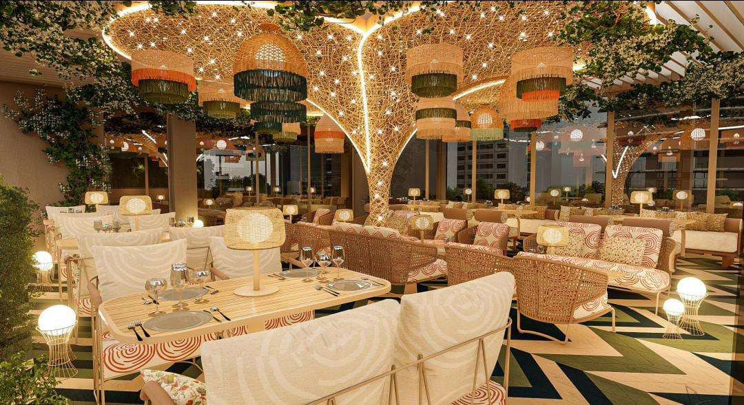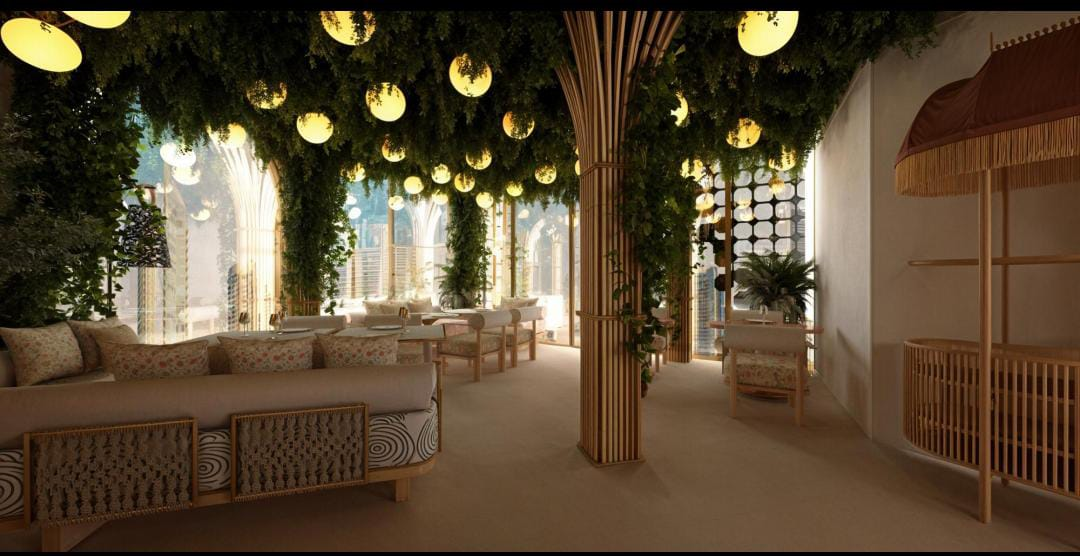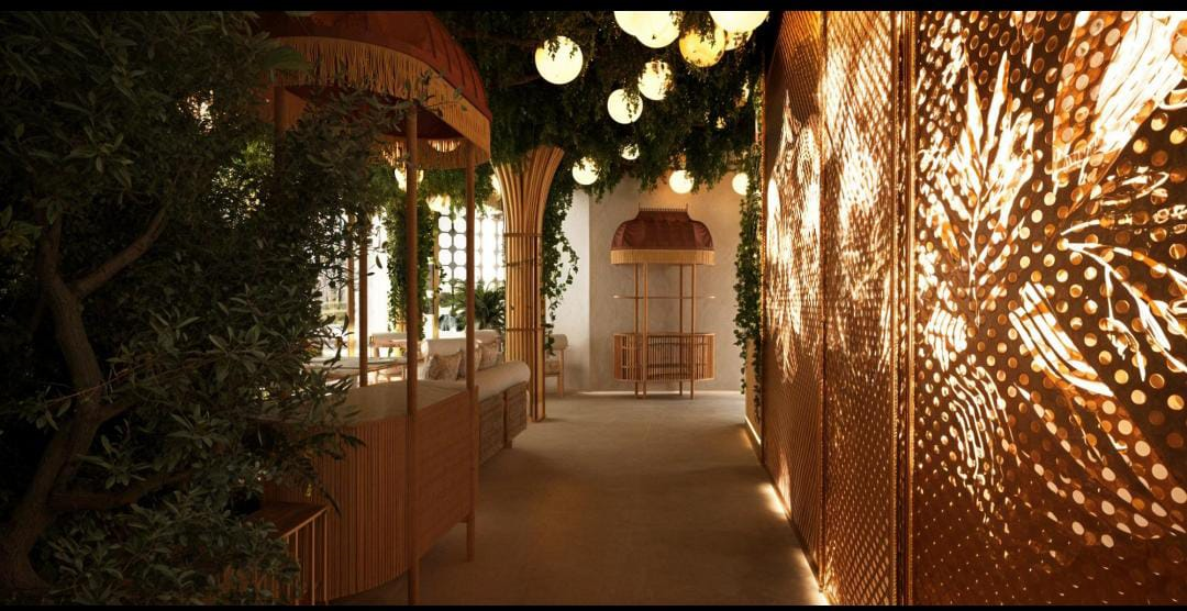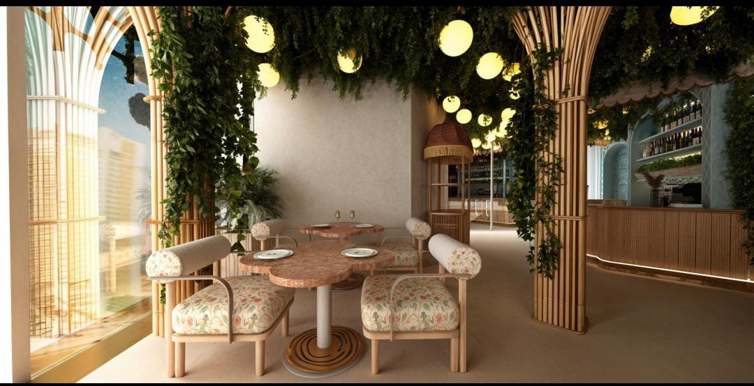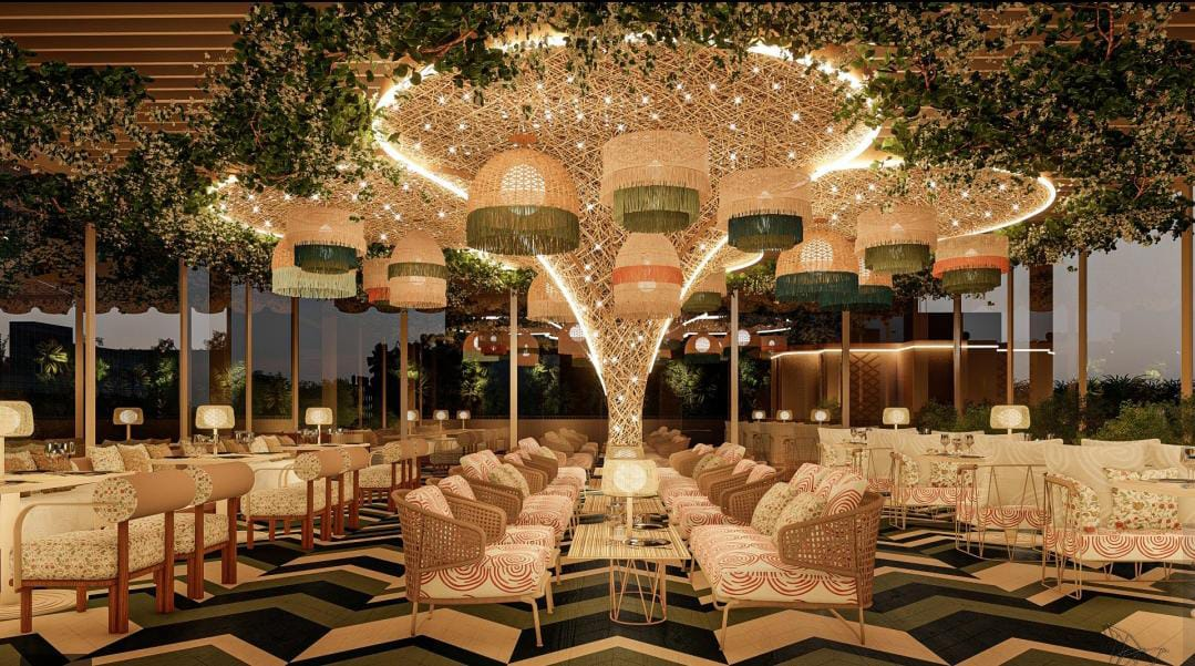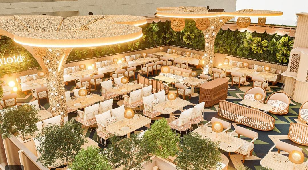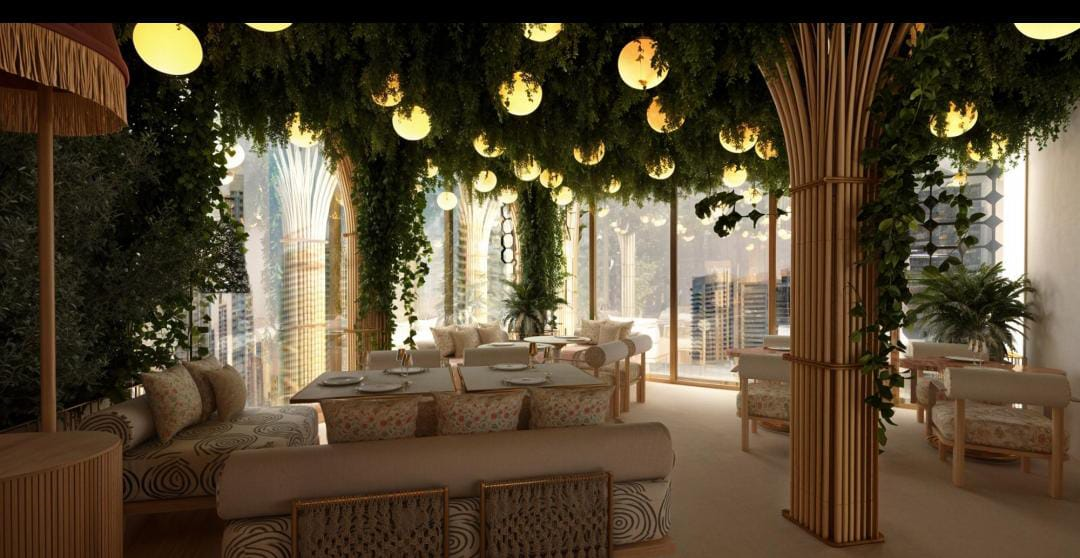 Discover Skoya, a rooftop restaurant concept inspired by the elegance and strength of the Sequoia tree. Nestled above Starco Downtown, this design blends natural textures, sculptural tree-like forms, and lush indoor greenery to create a serene dining experience above the city. A harmony of nature and modern design, brought to life through warm tones, organic shapes, and elevated ambiance.
