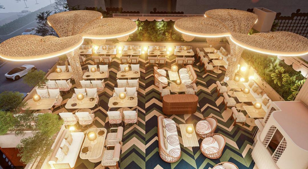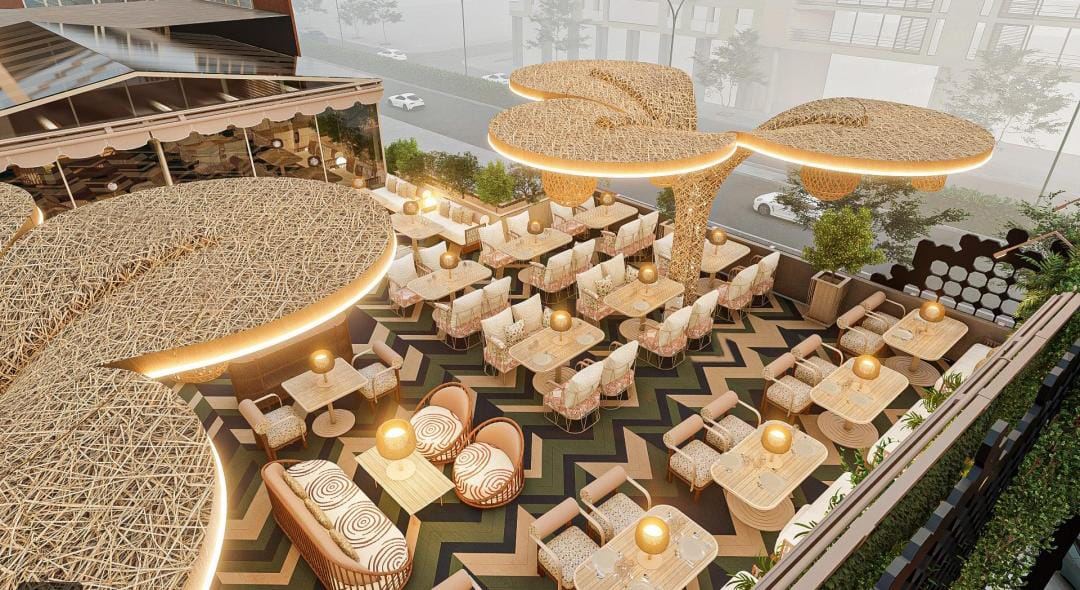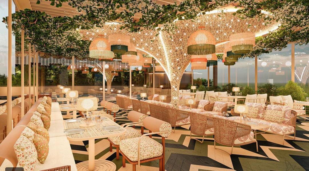 The semi-outdoor and outdoor areas of Skoya offer a seamless connection between architecture and nature. Surrounded by greenery, natural textures, and open skies, these spaces were designed to evoke calm, warmth, and effortless flow. Whether under soft shade or open air, every corner invites guests to relax, dine, and disconnect — all above the cityscape of Starco Downtown.