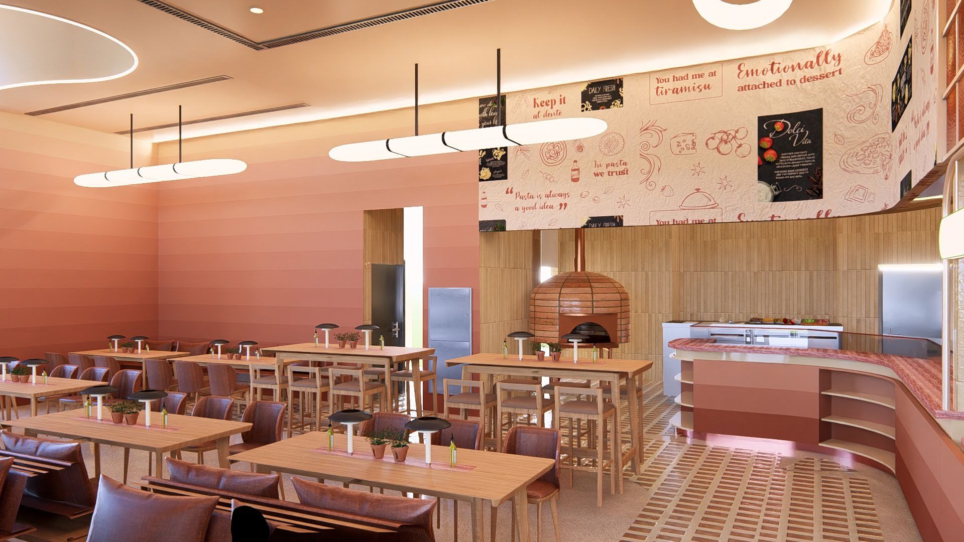 Vapiano is a casual Italian restaurant in Dubai, where L’Artquitecte redesigned one of its franchise locations. The interior focuses on a contemporary, approachable design that welcomes families and groups, using clean lines, warm materials, and thoughtful spatial planning. The concept balances functionality with a friendly atmosphere, creating a comfortable and engaging environment for everyday dining.