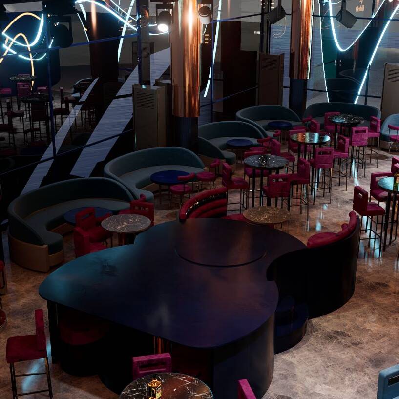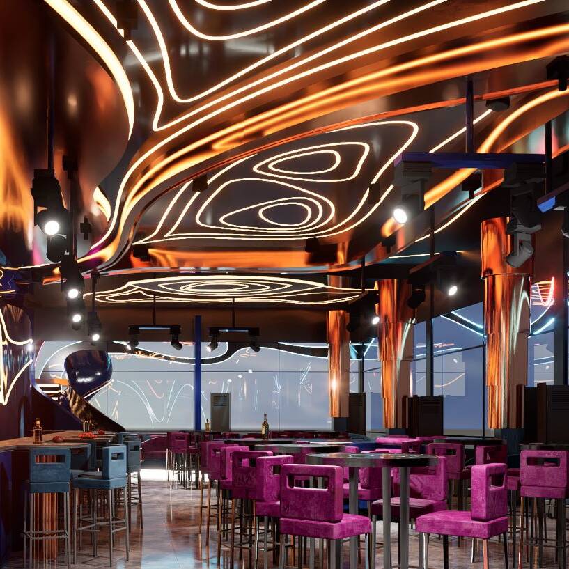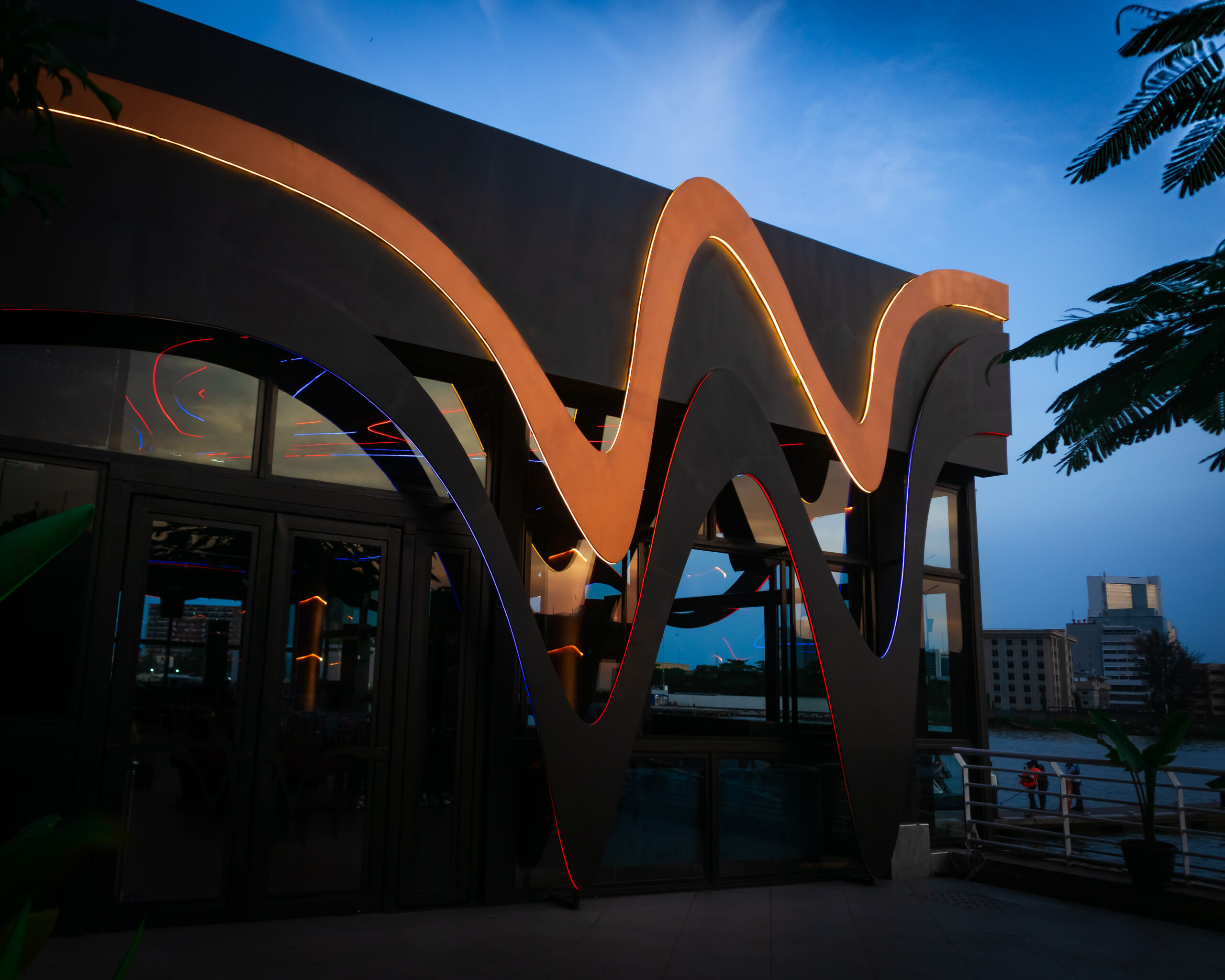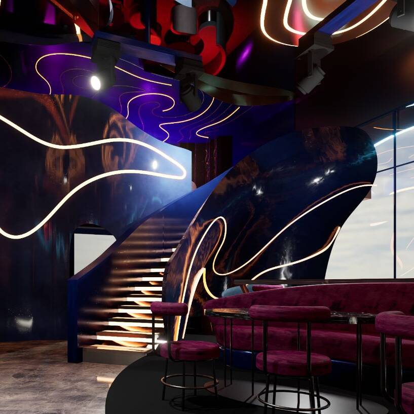 W BAR CONCEPT IS A BAR DESIGN IN LAGOS LOCATED BY THE SEA.. WE WERE INSPIRED BY THE SEA WAVES AND IMAGINED THEM TURNING AROUND THE SPACE TO CREATE THE FULL TRAM AND THE MUSIC BEATS EXEPRIENCE AND THE MAIN EMBLEM BEHING THE W IN THE LOGO