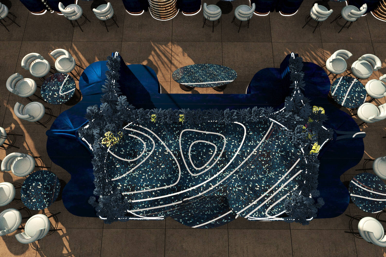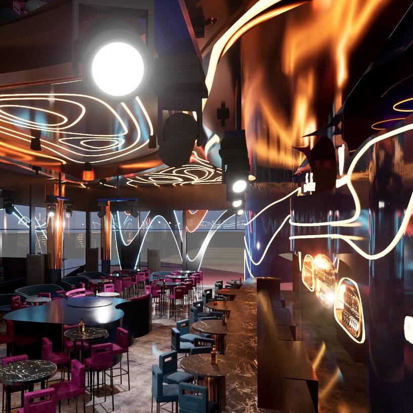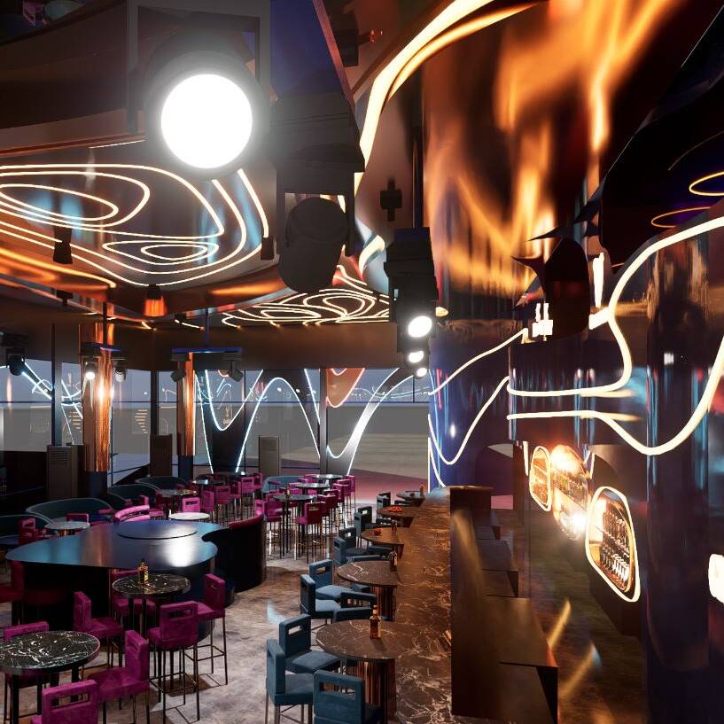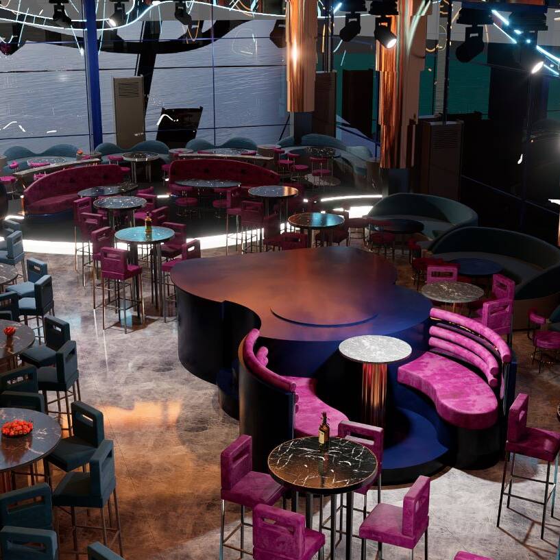 W BAR CONCEPT IS A BAR DESIGN IN LAGOS LOCATED BY THE SEA.. WE WERE INSPIRED BY THE SEA WAVES AND IMAGINED THEM TURNING AROUND THE SPACE TO CREATE THE FULL TRAM AND THE MUSIC BEATS EXEPRIENCE AND THE MAIN EMBLEM BEHING THE W IN THE LOGO