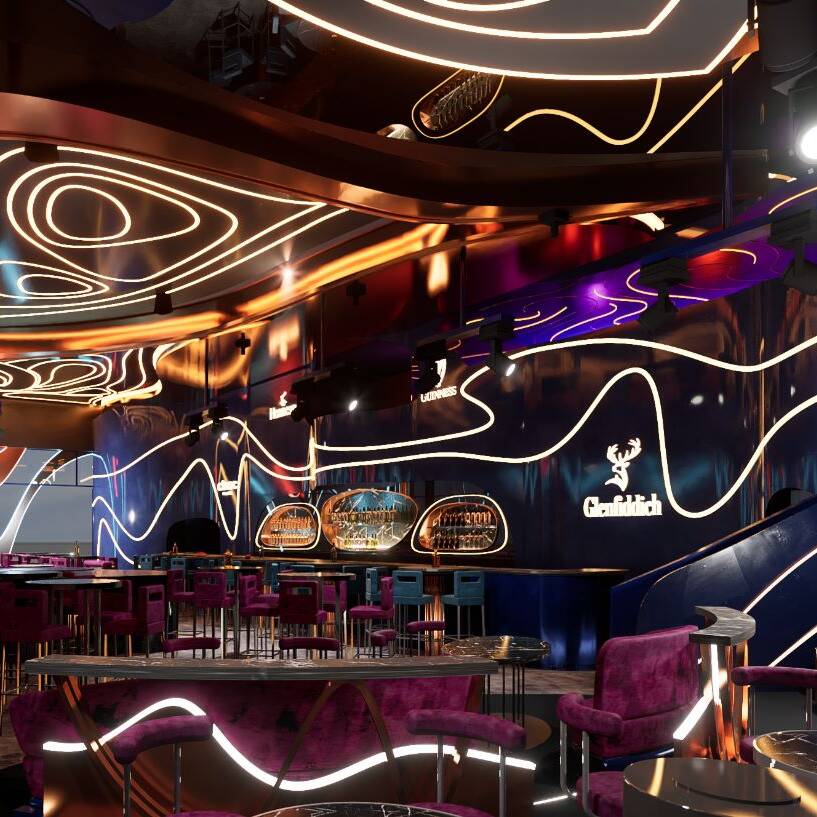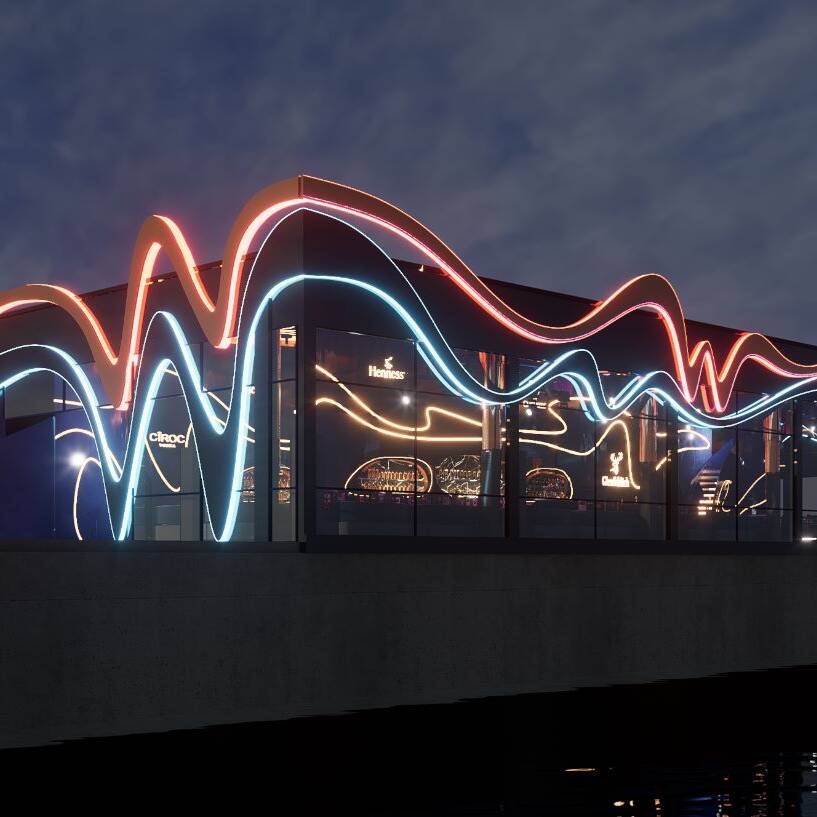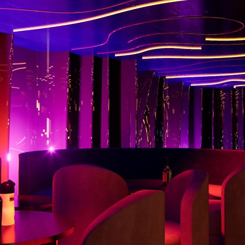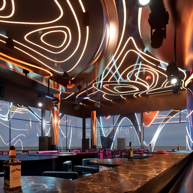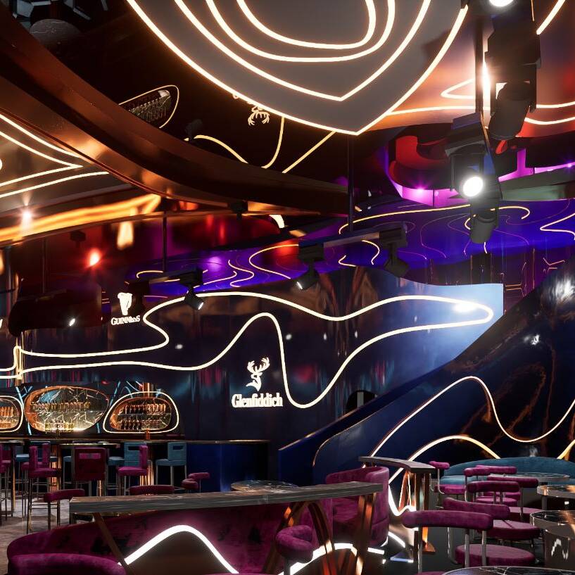 These images capture the essence of W Bar — a curved architectural gem defined by its modern lines, soft ambient lighting, and dynamic atmosphere. Every detail reflects a refined approach to nightlife design, where structure and illumination create an unforgettable setting.