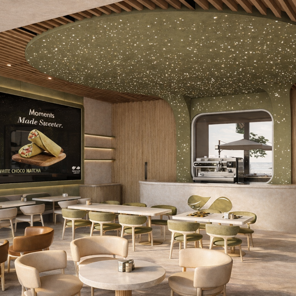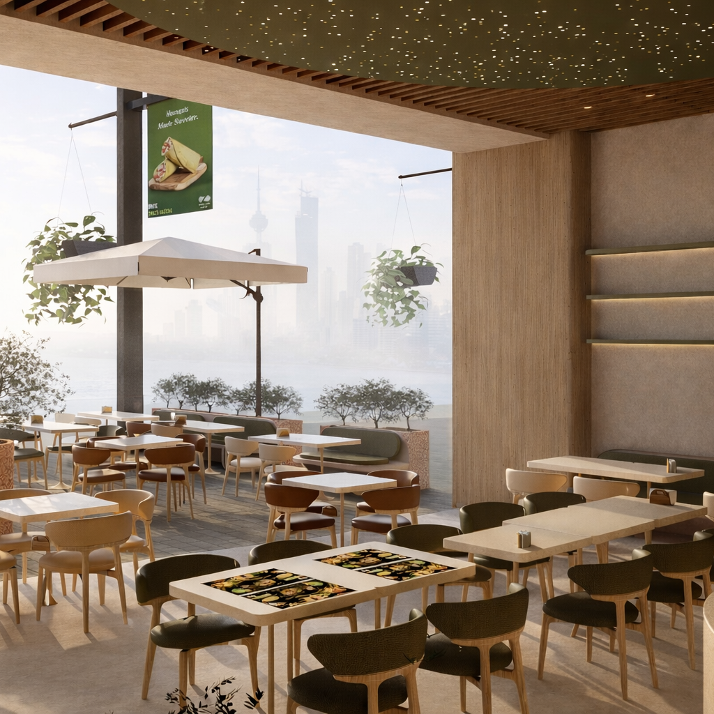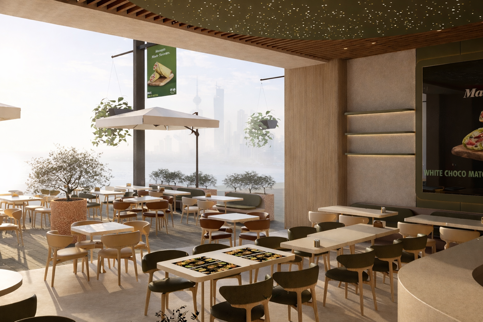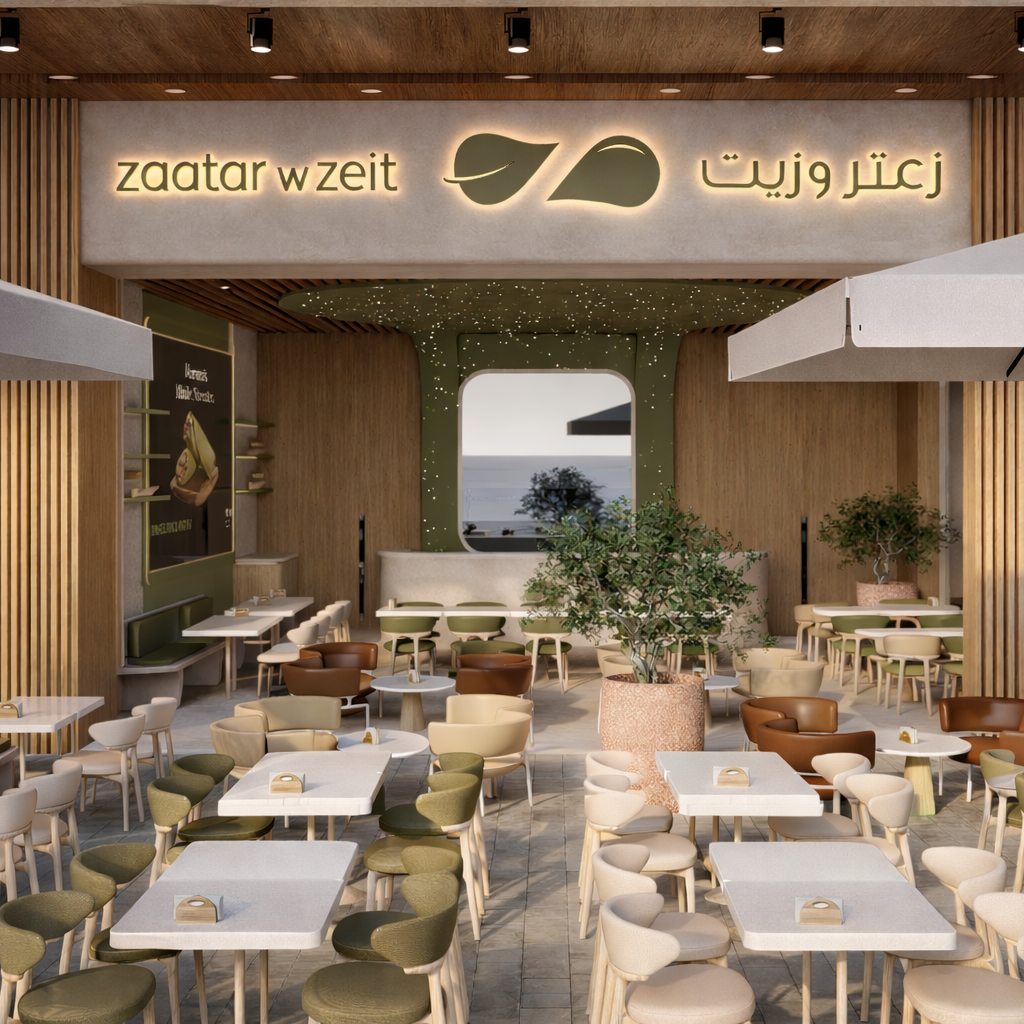 As part of Zaatar W Zeit’s regional expansion, the Kuwait branch embodies a refined iteration of the brand’s architectural identity. L’Artquitecte balances consistency with contextual sensitivity, creating a space that feels both recognizable and locally attuned. The design strengthens brand continuity while enhancing the overall dining experience.
