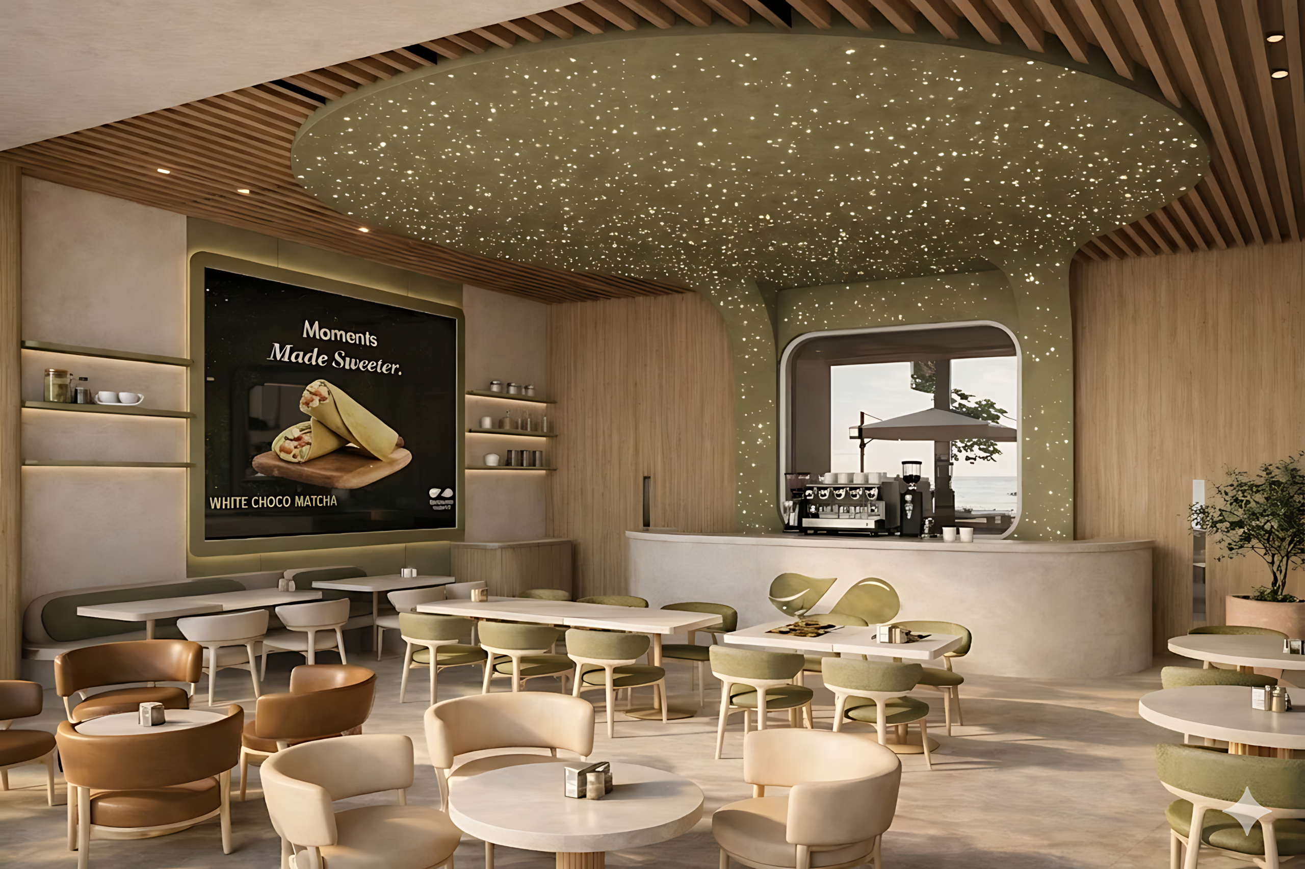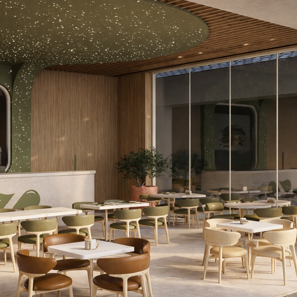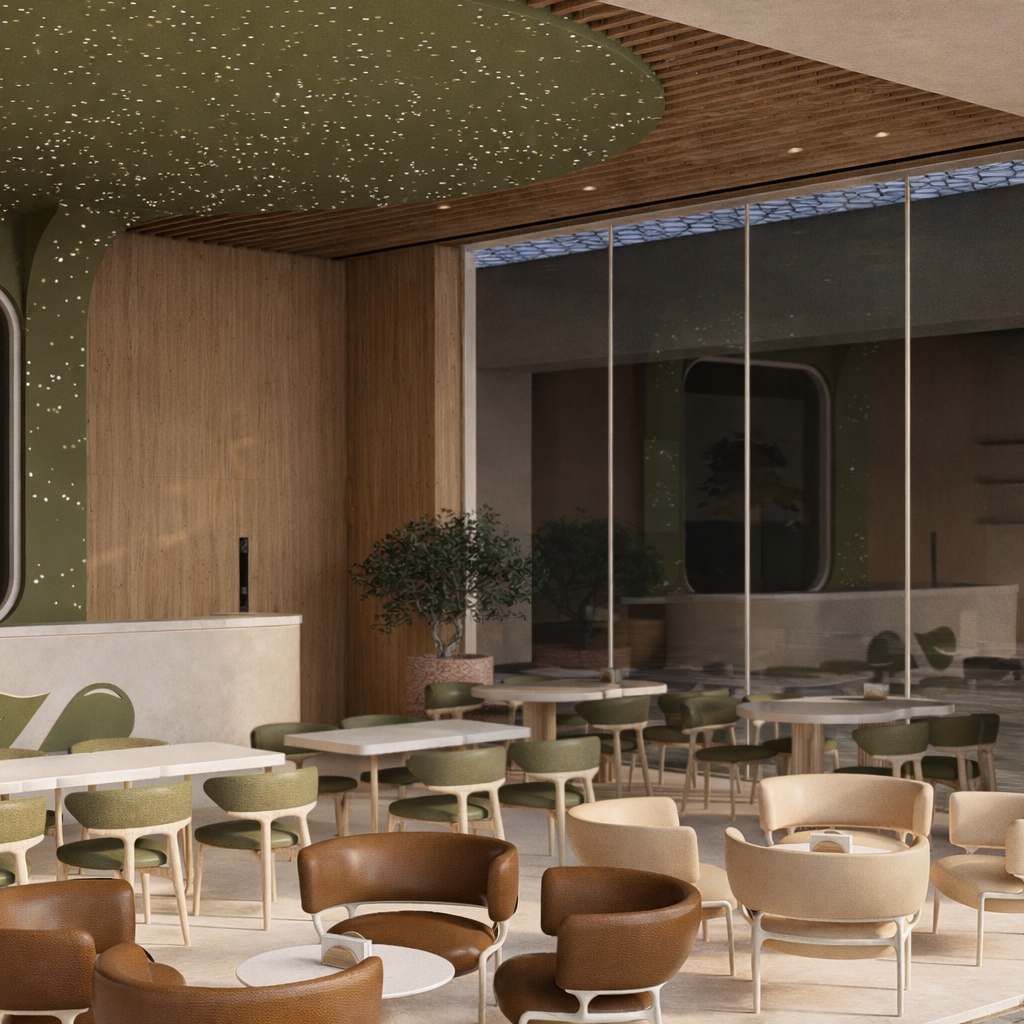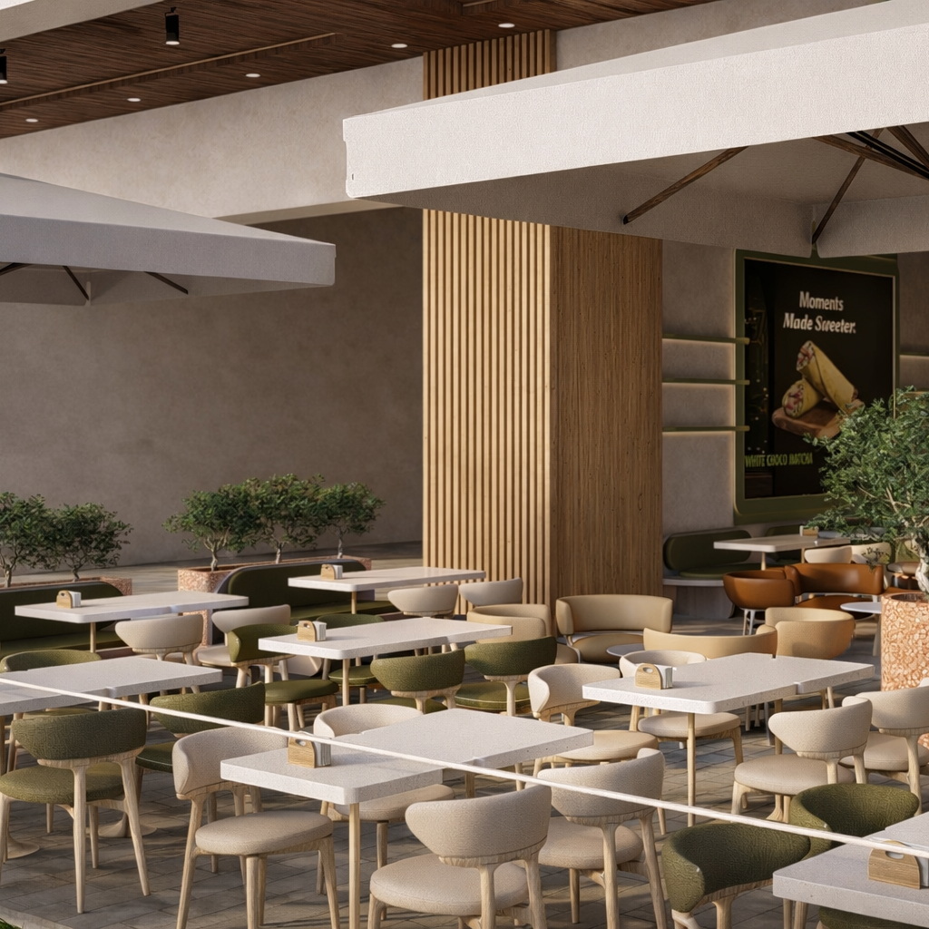As part of Zaatar W Zeit’s regional expansion, the Kuwait branch embodies a refined iteration of the brand’s architectural identity. L’Artquitecte balances consistency with contextual sensitivity, creating a space that feels both recognizable and locally attuned. The design strengthens brand continuity while enhancing the overall dining experience.