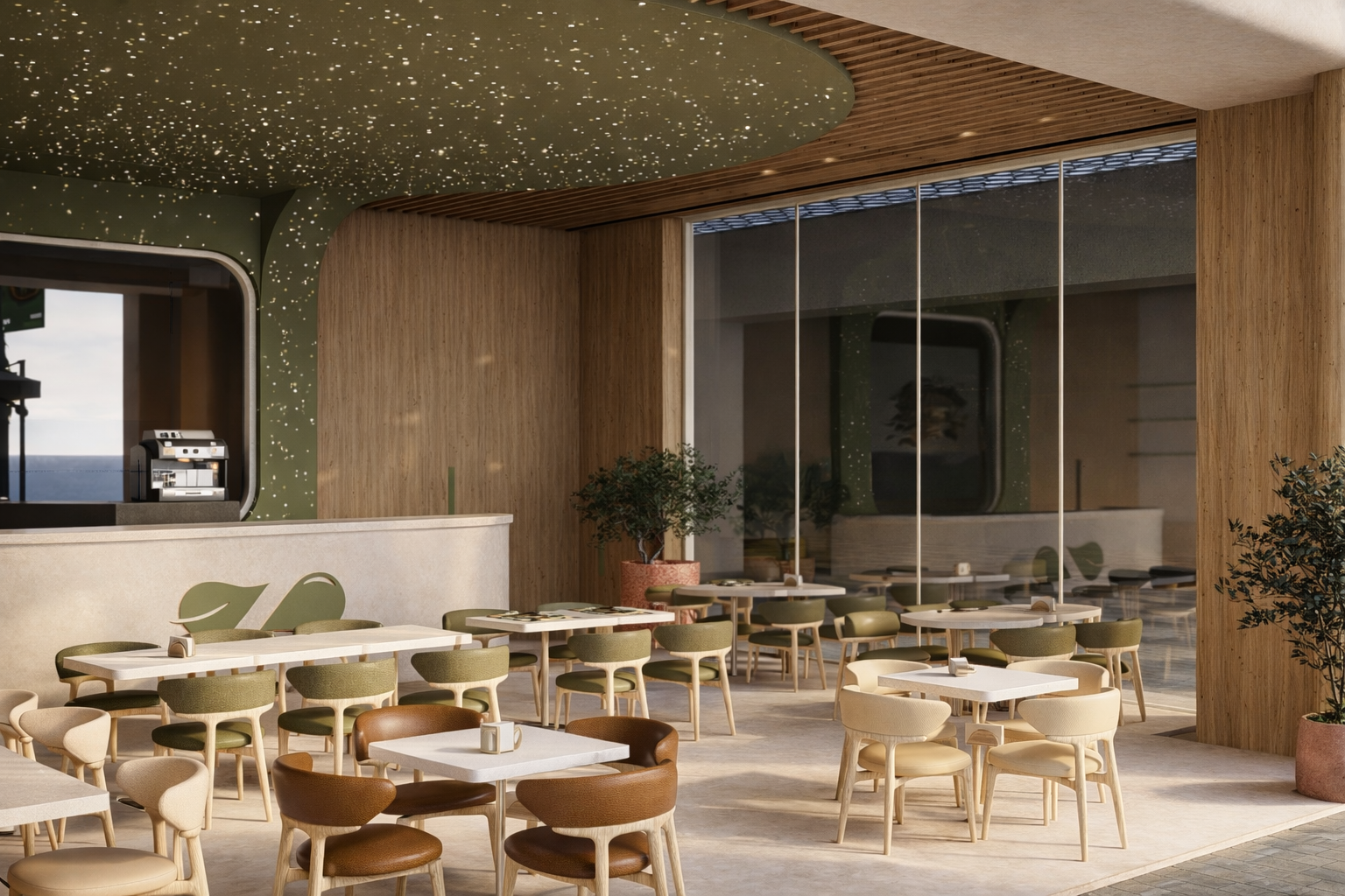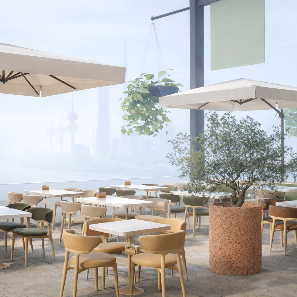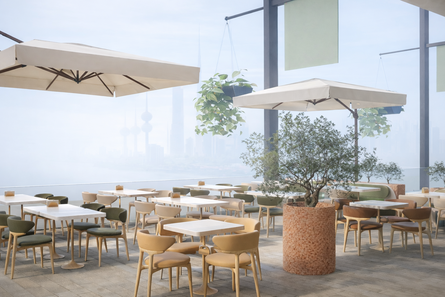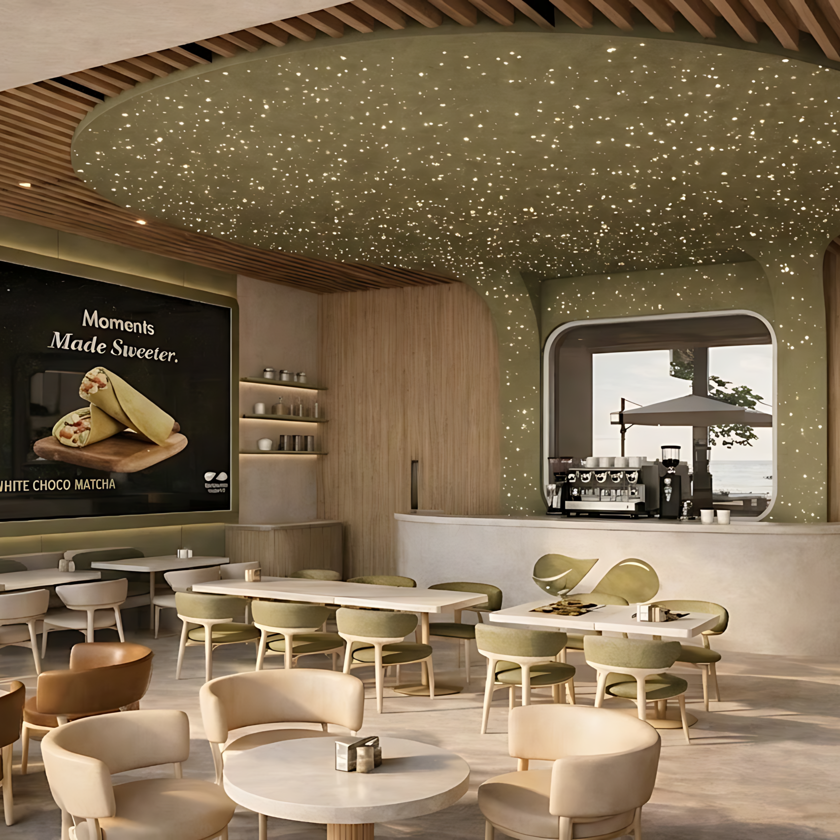 As part of Zaatar W Zeit’s regional expansion, the Kuwait branch embodies a refined iteration of the brand’s architectural identity. L’Artquitecte balances consistency with contextual sensitivity, creating a space that feels both recognizable and locally attuned. The design strengthens brand continuity while enhancing the overall dining experience.