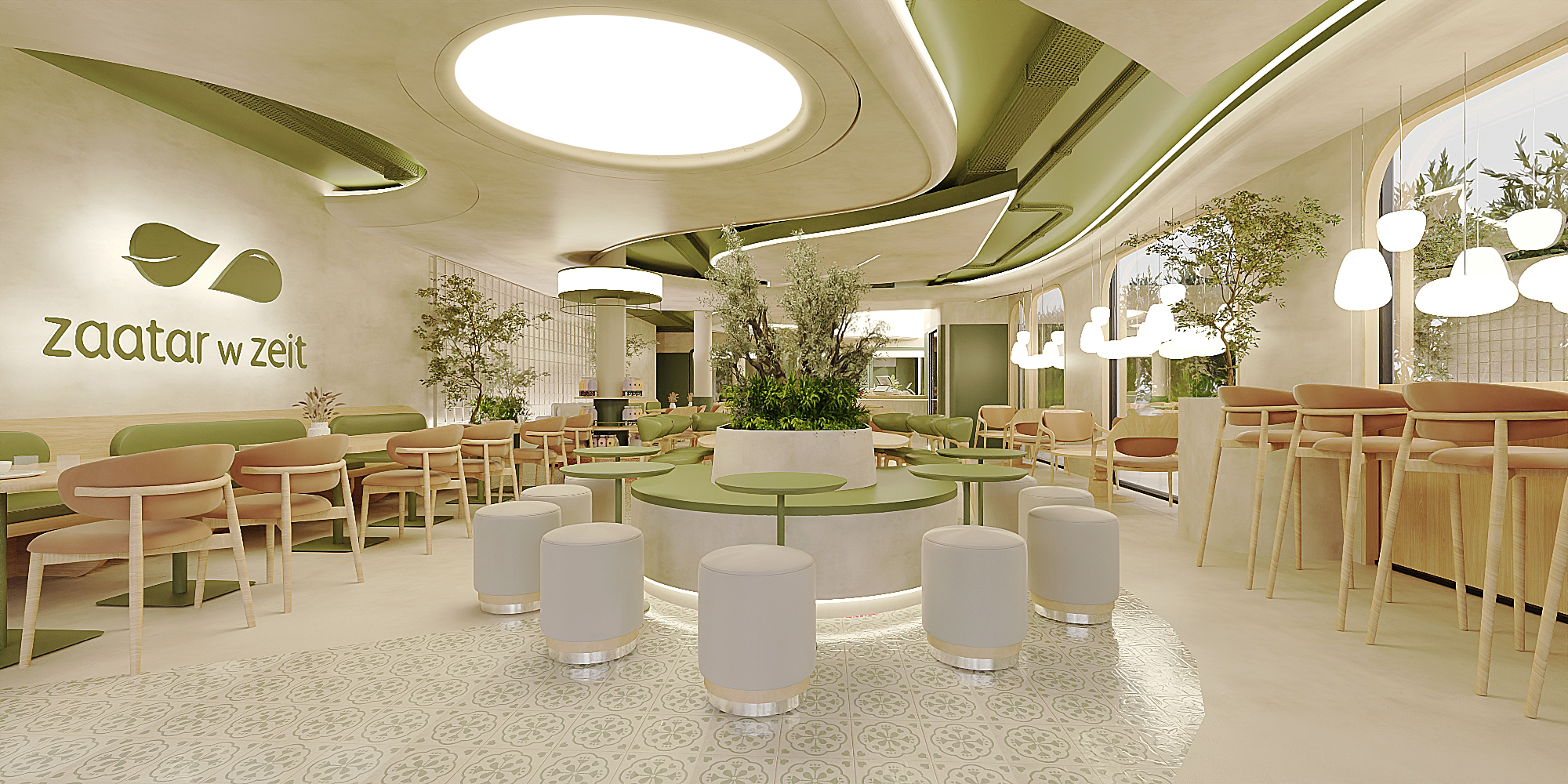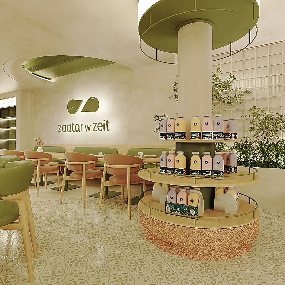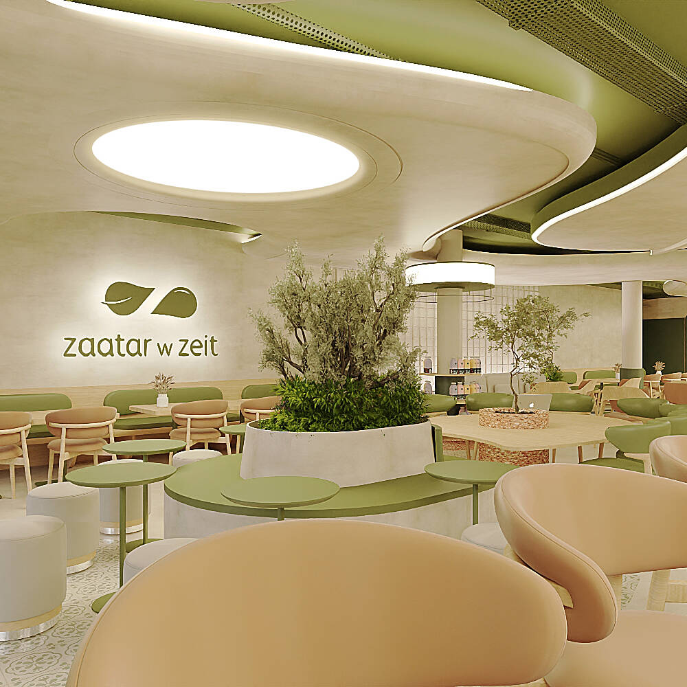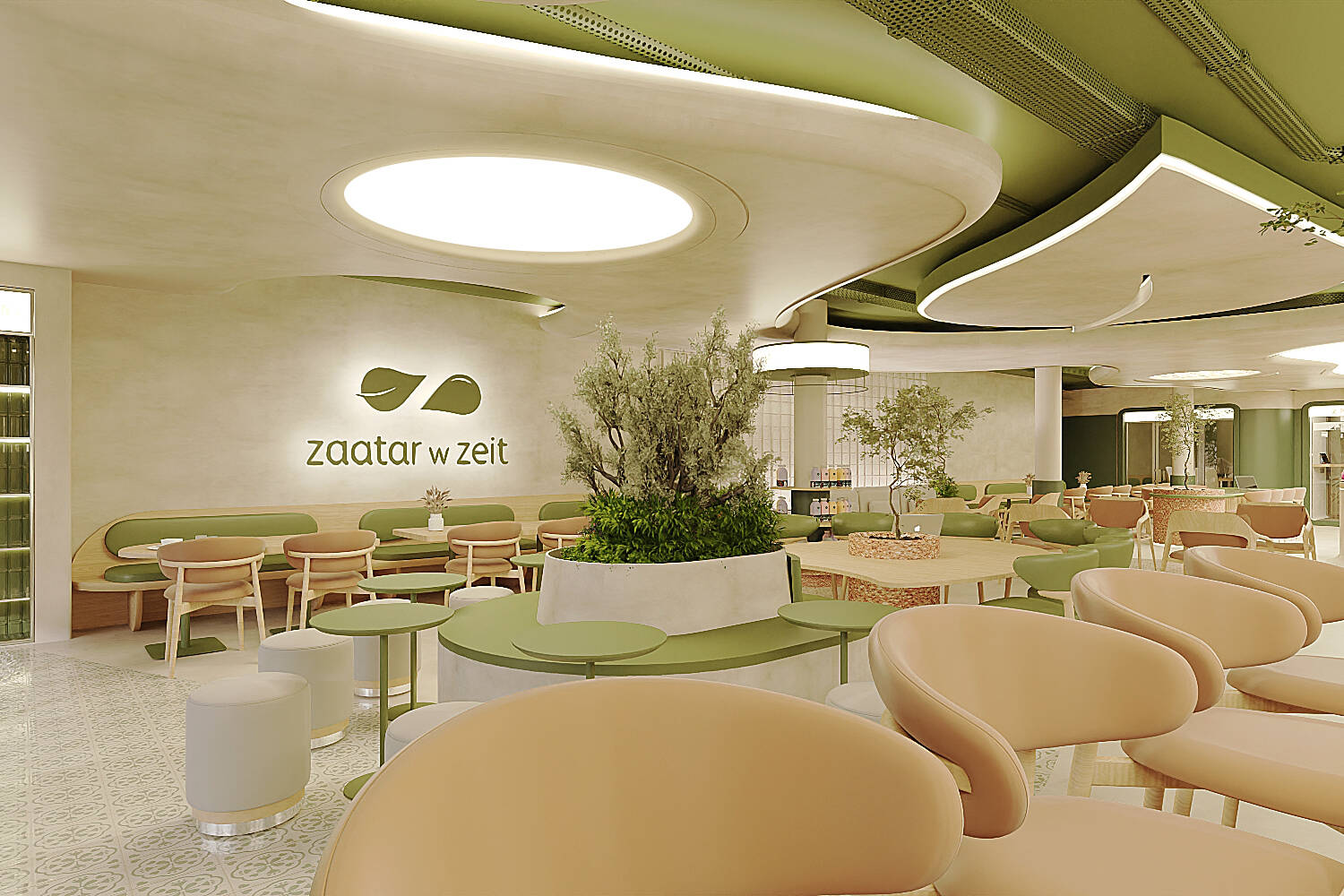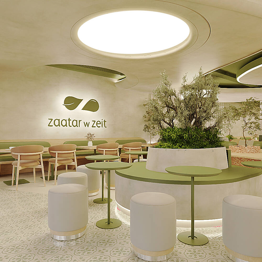 L’Artquitecte developed the architectural concept for Zaatar w Zeit. The project translates the restaurant’s casual, contemporary spirit into a refined spatial experience while maintaining strong brand consistency.