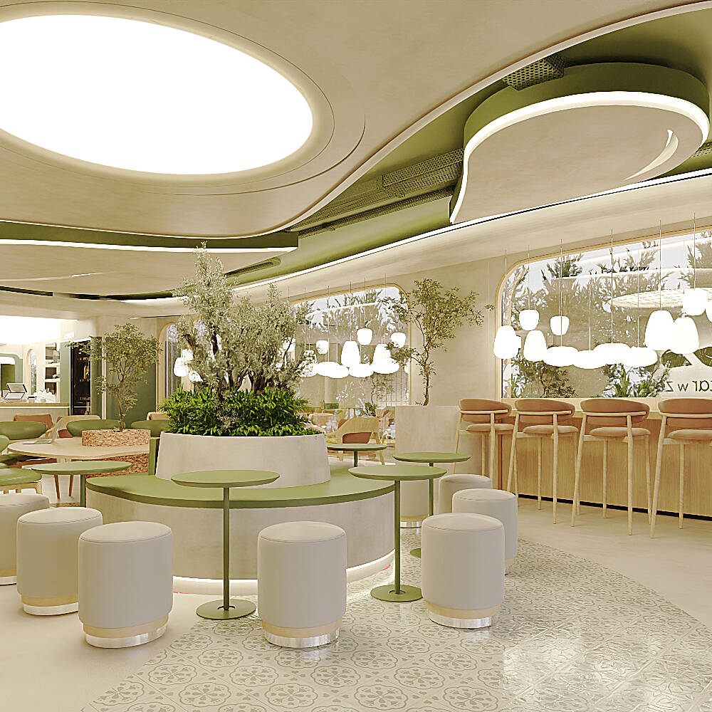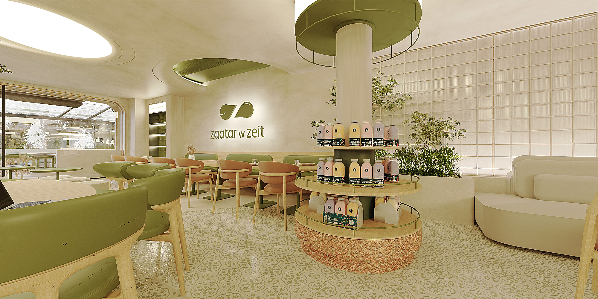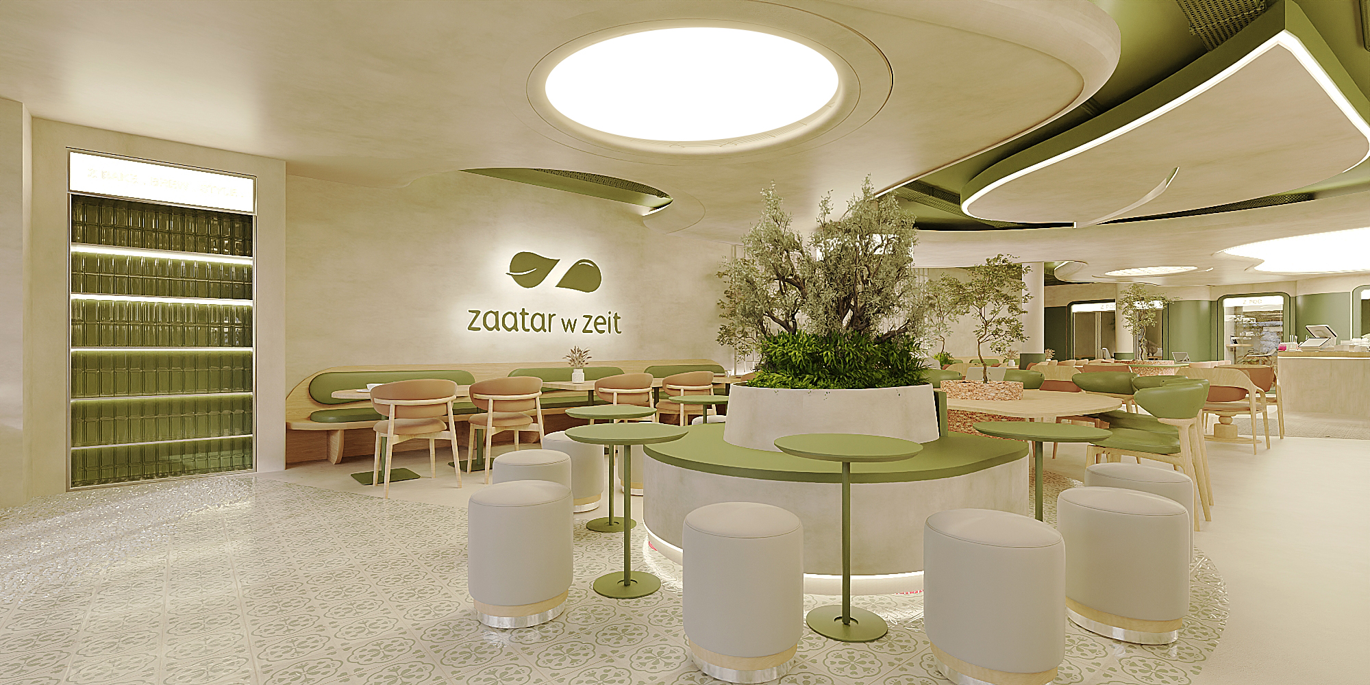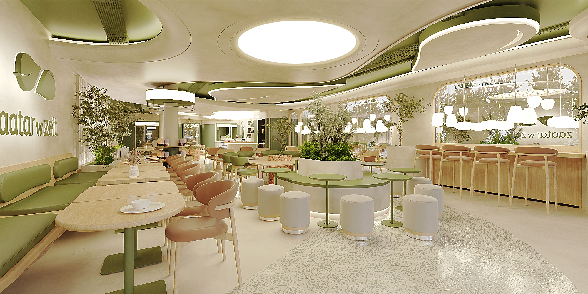 L’Artquitecte developed the architectural concept for Zaatar w Zeit. The project translates the restaurant’s casual, contemporary spirit into a refined spatial experience while maintaining strong brand consistency.