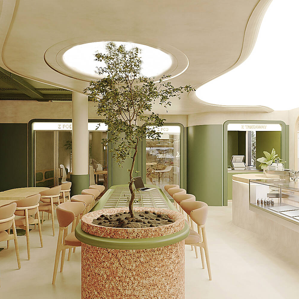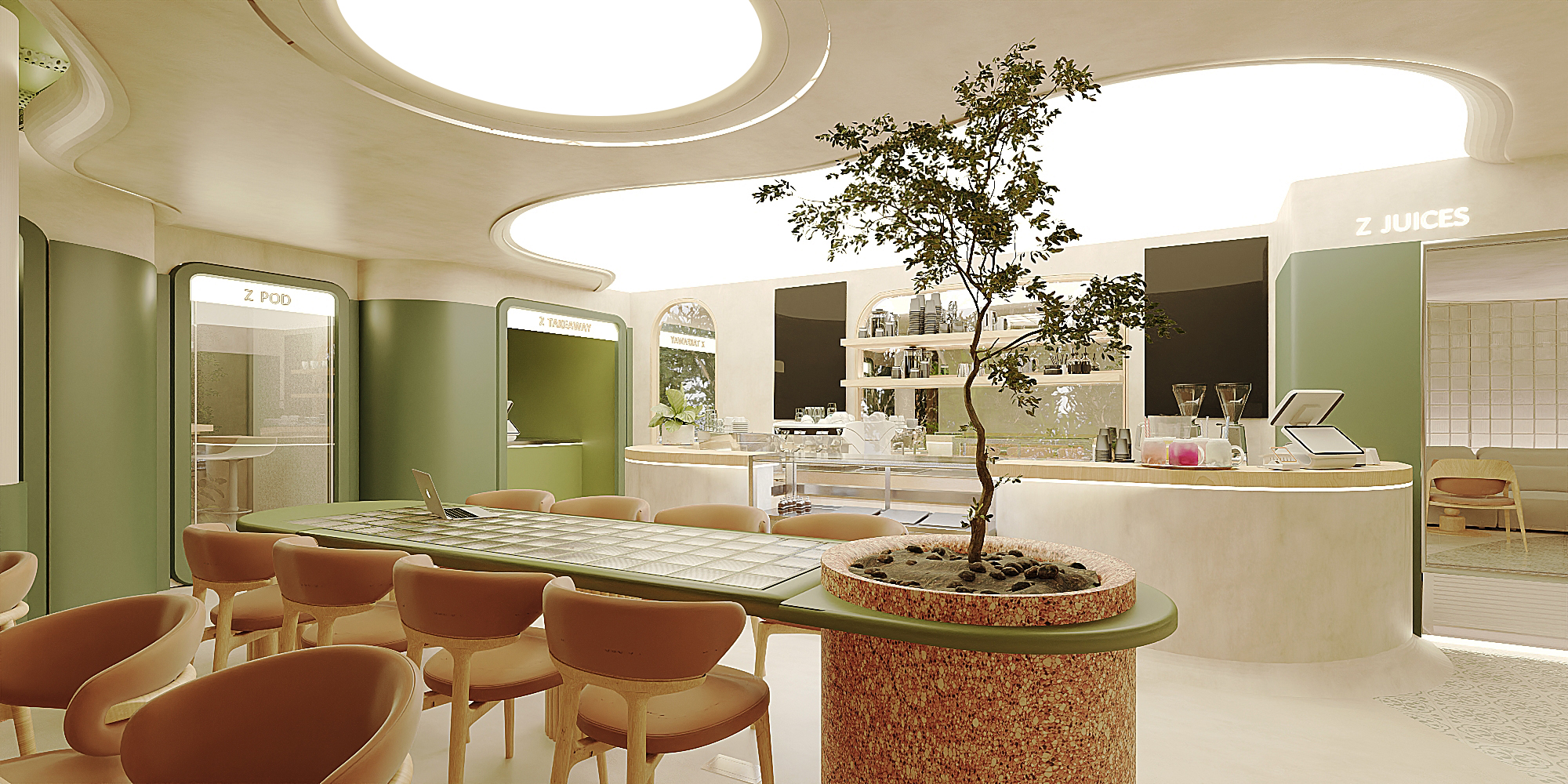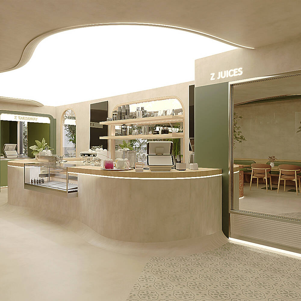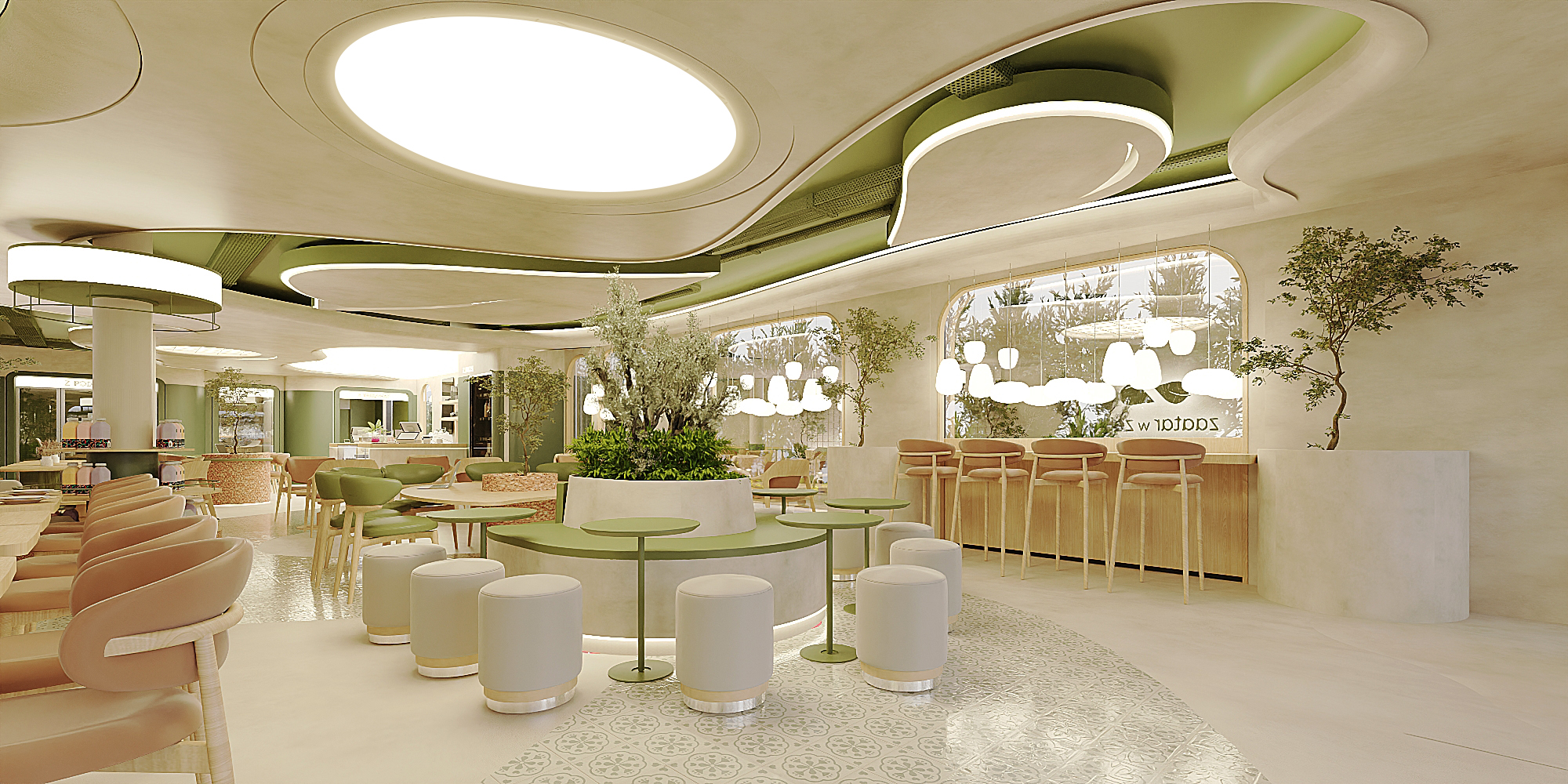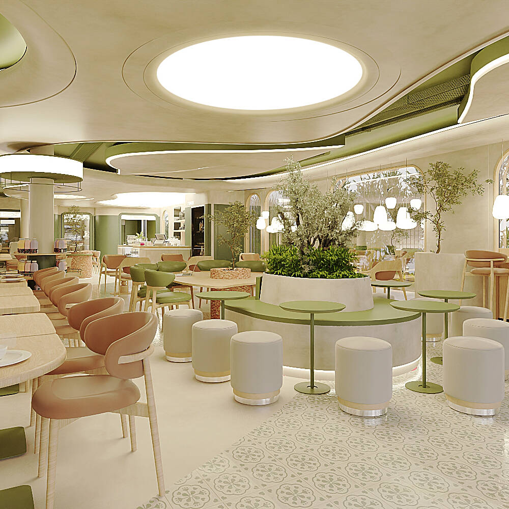 L’Artquitecte developed the architectural concept for Zaatar w Zeit. The project translates the restaurant’s casual, contemporary spirit into a refined spatial experience while maintaining strong brand consistency.