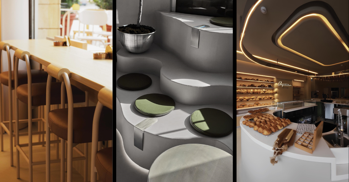 Neocement on walls, floors, and ceilings — two F&B projects