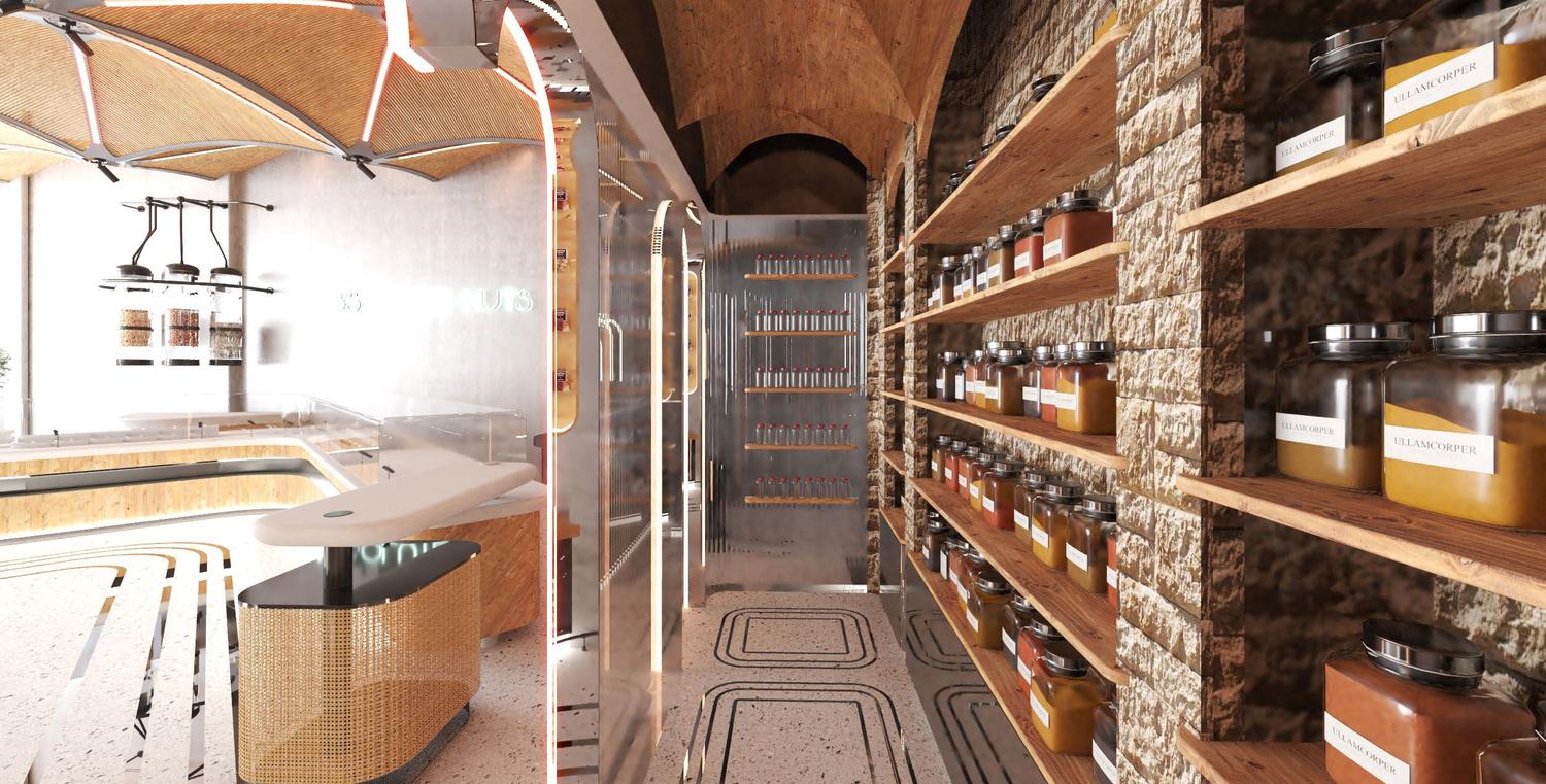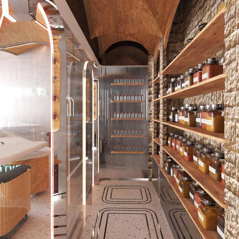 Al Mahmassani is designed as a thoughtful, elevated environment where flow and spatial organization enhance visitor engagement. The layout encourages natural movement through the space, while carefully selected materials and lighting create a warm, inviting, and tactile atmosphere.