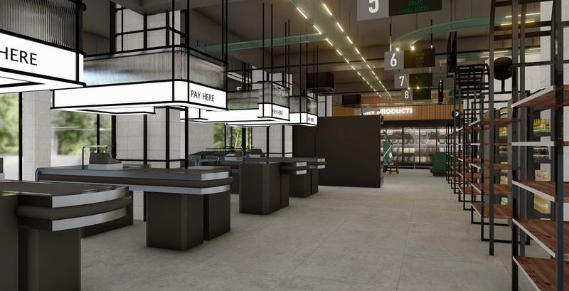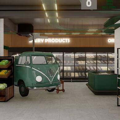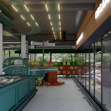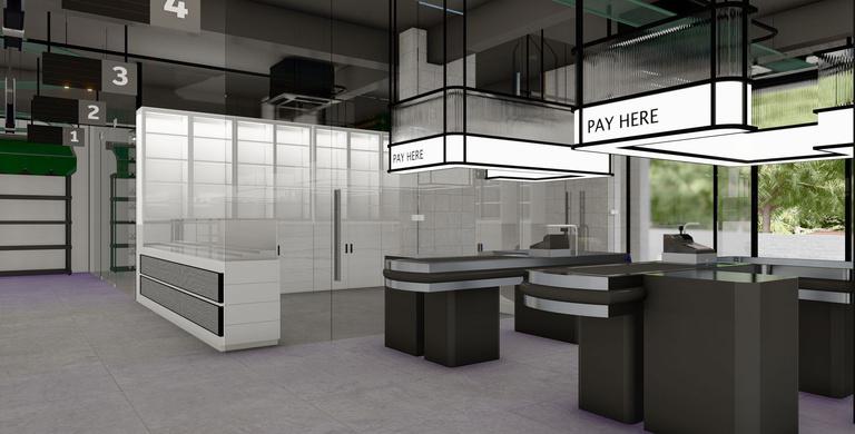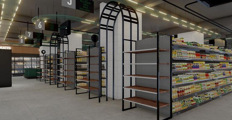 Trolley is designed as a modern supermarket that prioritizes clarity, efficiency, and ease of navigation. The layout organizes product zones intuitively while creating a sense of openness, allowing customers to move freely and comfortably. Thoughtful lighting and material choices enhance visibility and create a welcoming, accessible shopping experience.