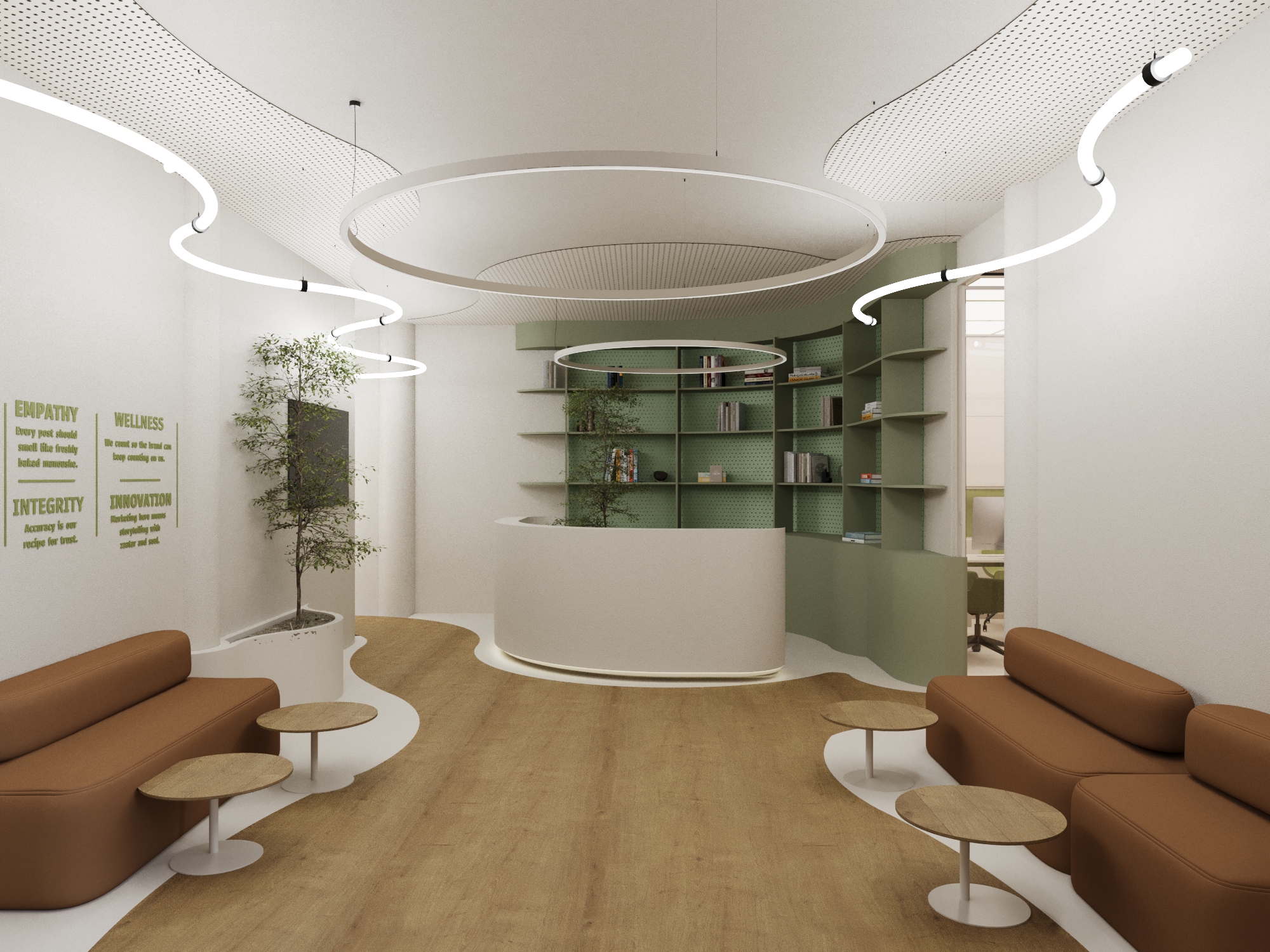 The Zaatar W Zeit head offices are conceived as the operational and cultural core of the brand. Beyond a workplace, the space reflects the company’s identity, bringing together teams within an environment that encourages alignment, creativity, and growth. The design moves away from rigid corporate structures, introducing a more open and connected layout that supports both collaboration and focused work.